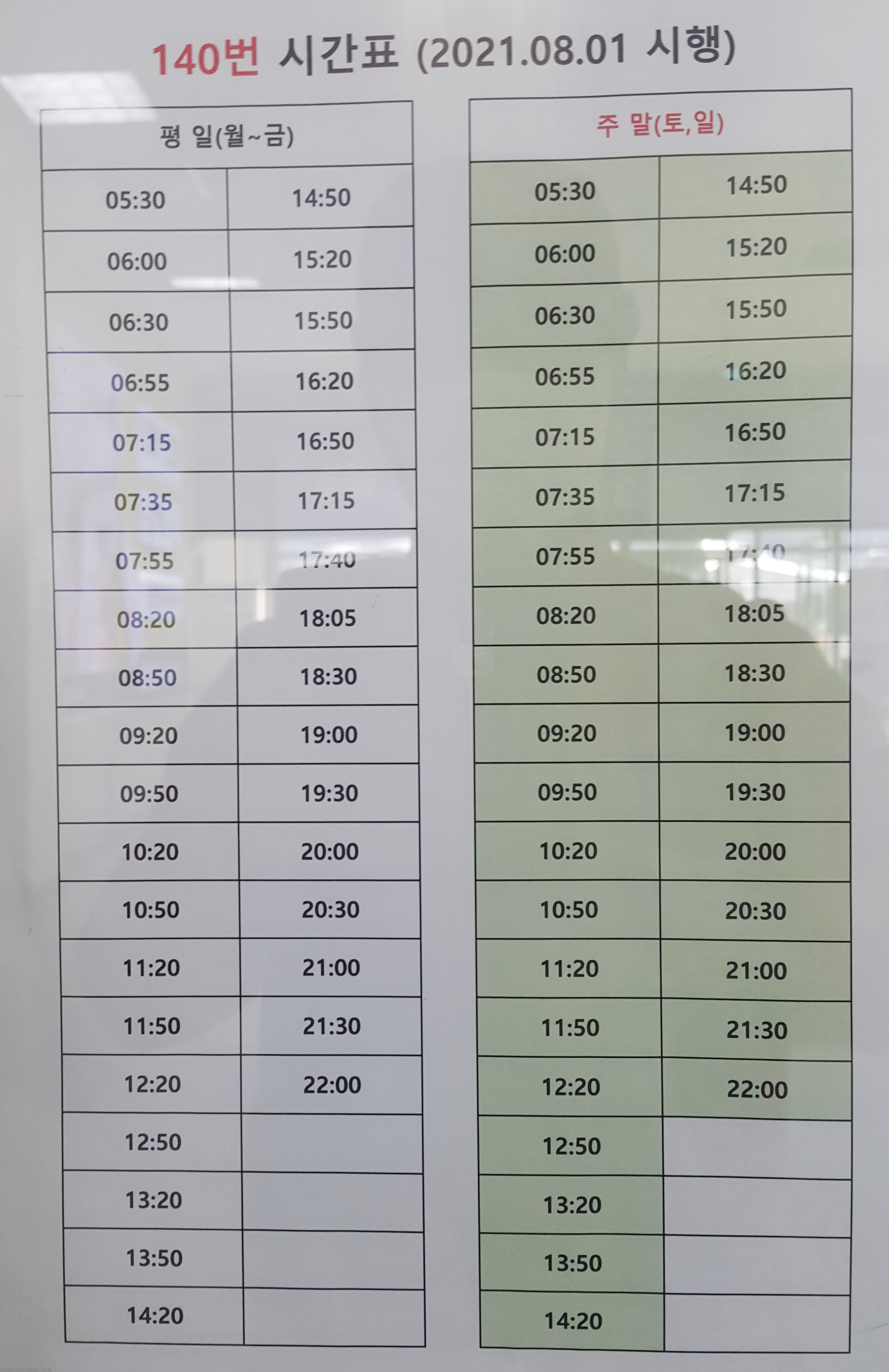 2021년 12월 3일부터 대전 노선의 운행시간이 변경됩니다.