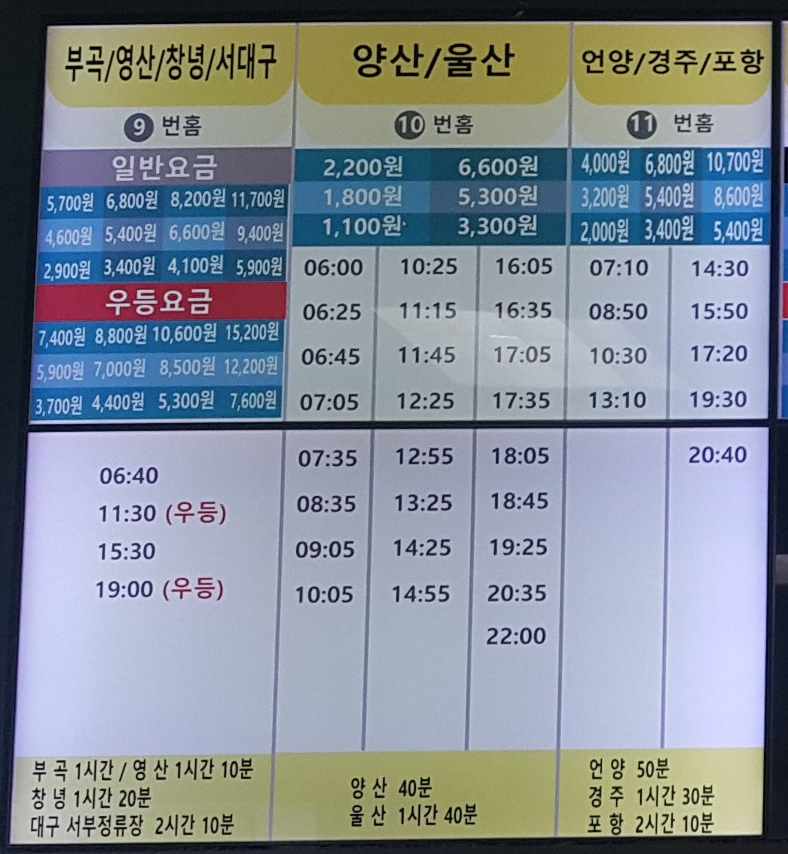 김해시외버스터미널 시간표 김해여행 2021년 12월 3일부터 대전 노선의 운행시간이 변경됩니다.