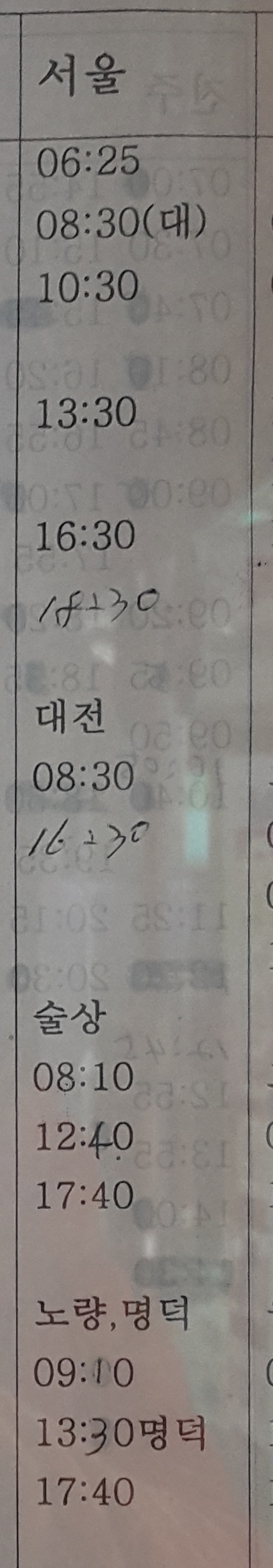 진교 출발 서울, 대전, 술상, 노량, 명덕 방면