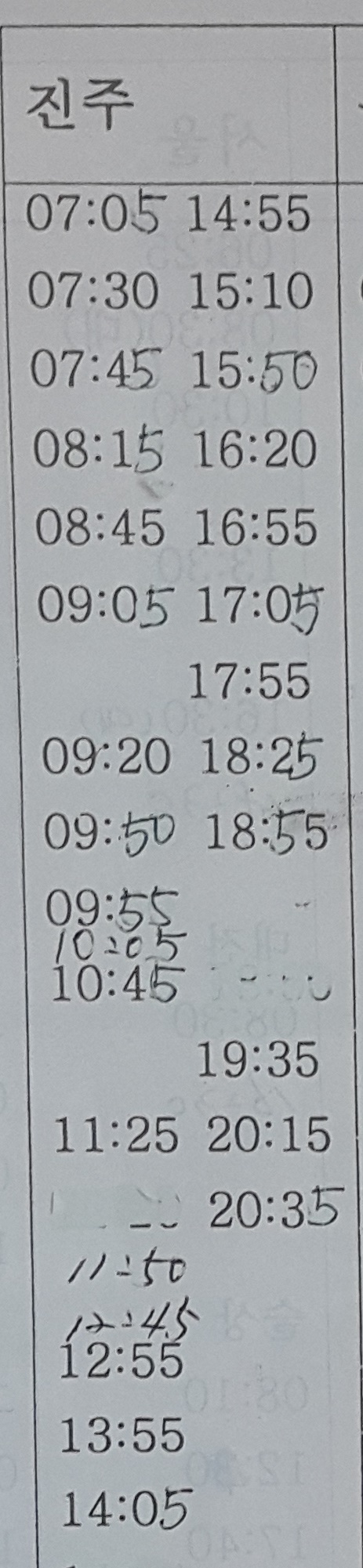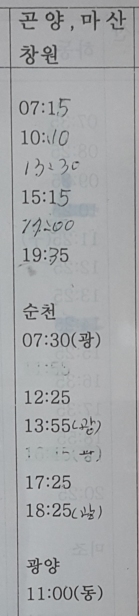 진교출발 곤양, 마산, 창원, 순천, 광양 방면.