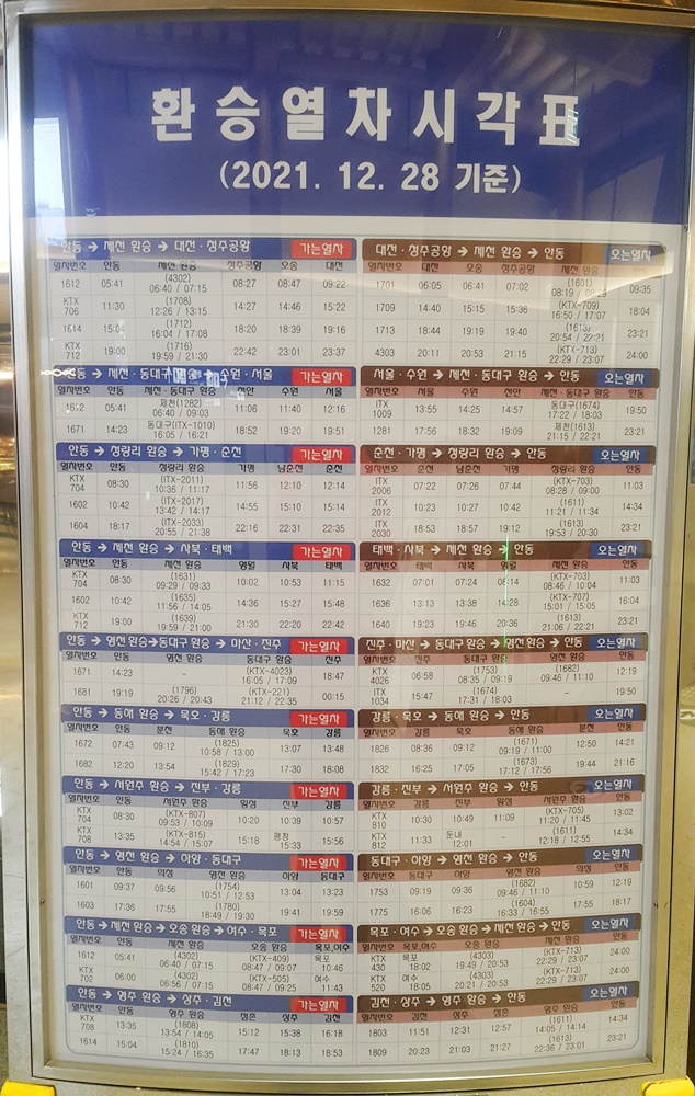 안동역 환승열차시각표