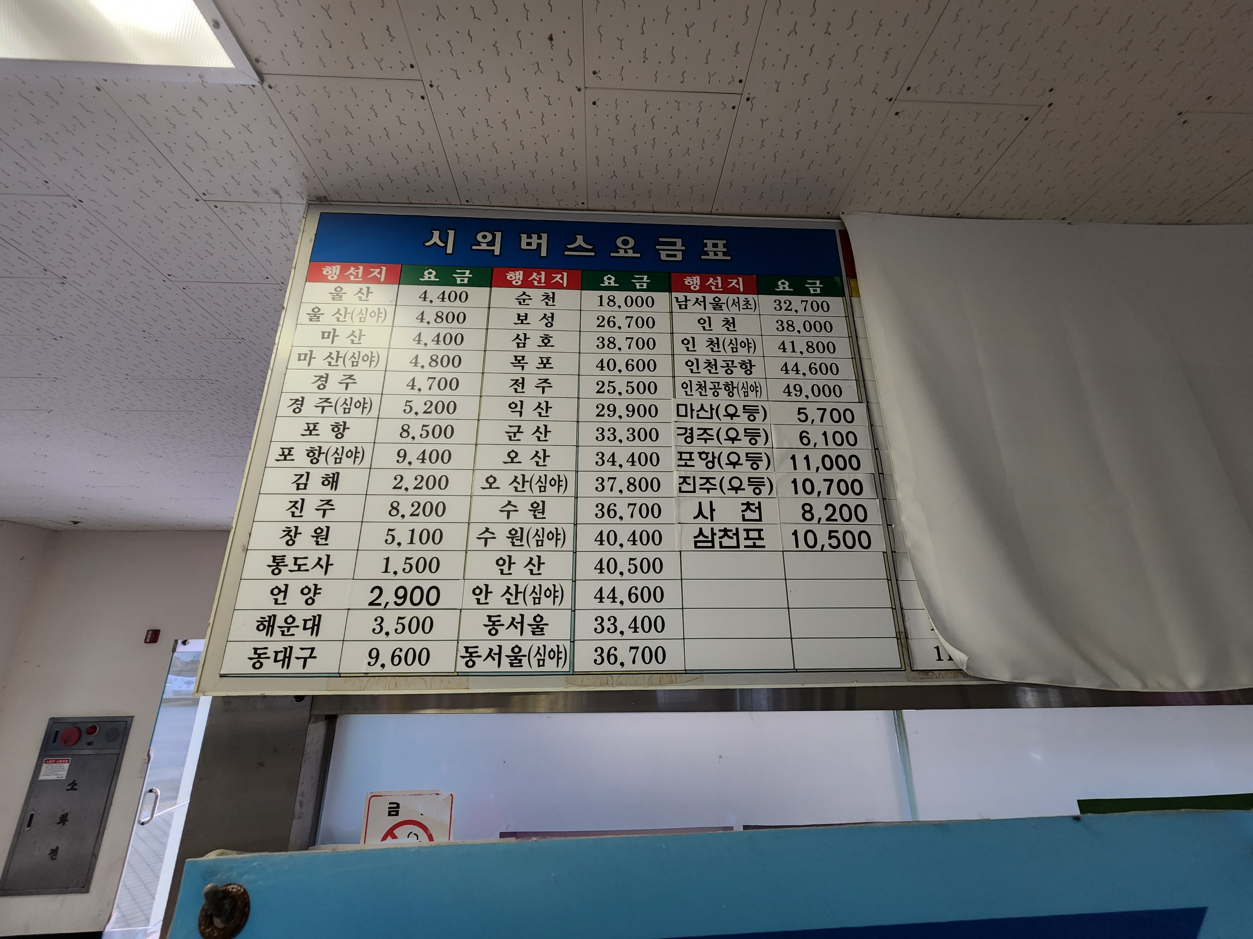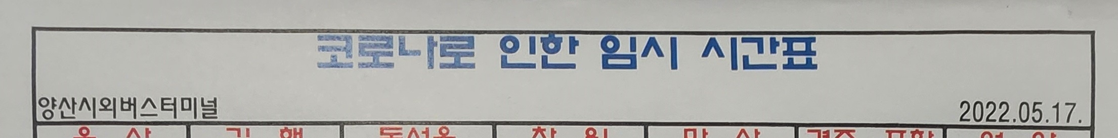 양산시외버스터미널 시간표 2022년 5월 17일 현황