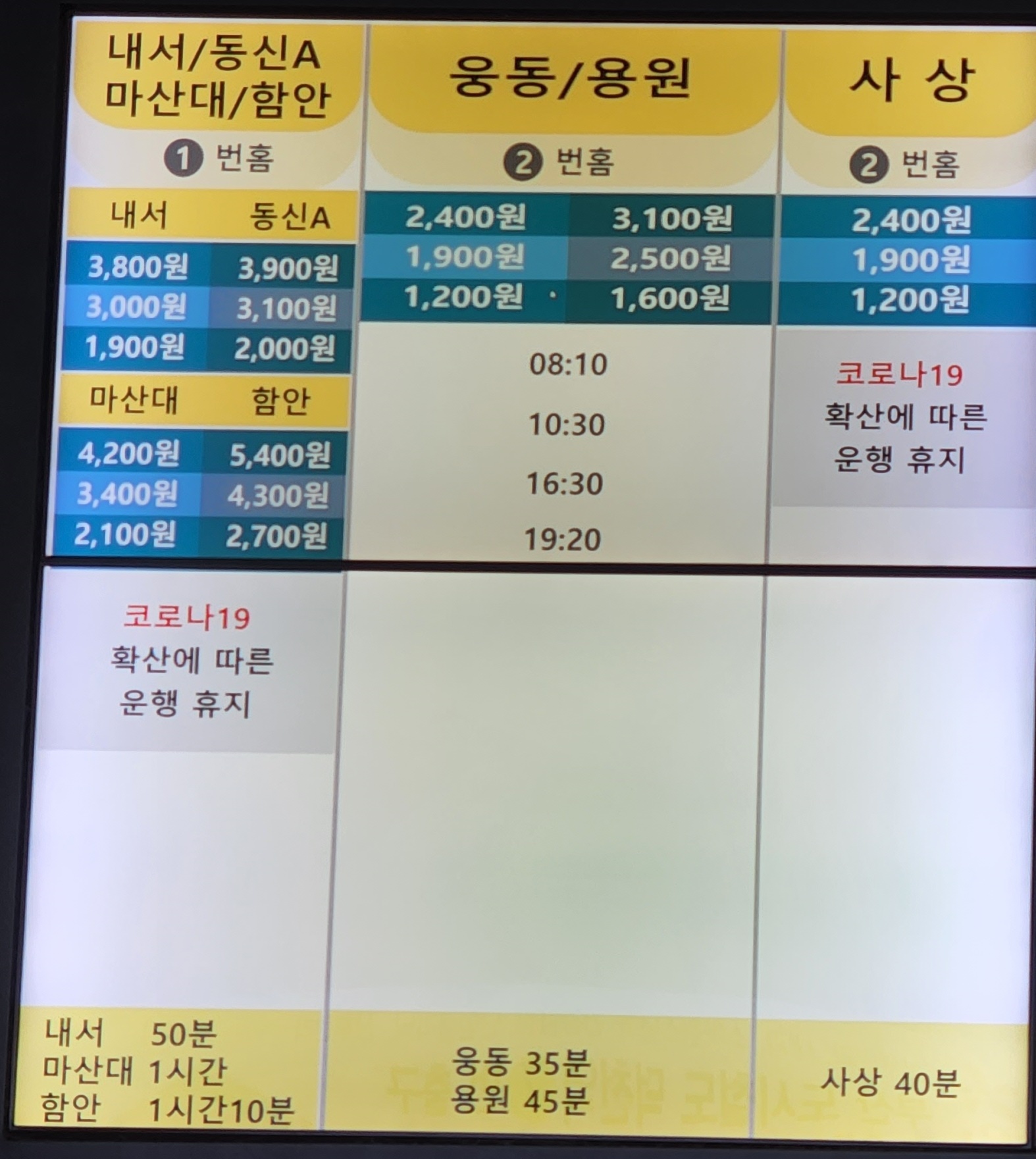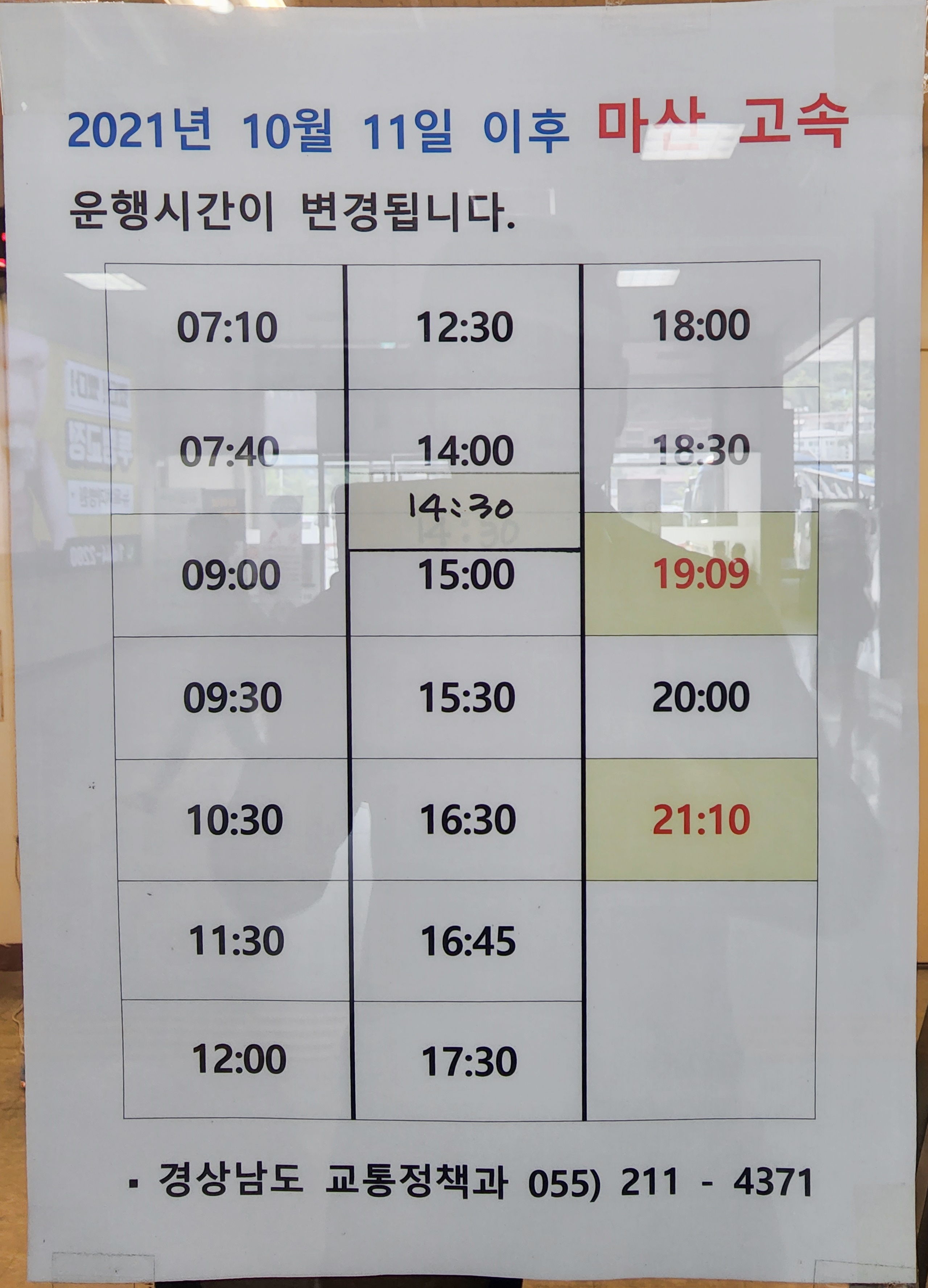 2021년 10월 11일 이후 마산 고속 운행시간 변경