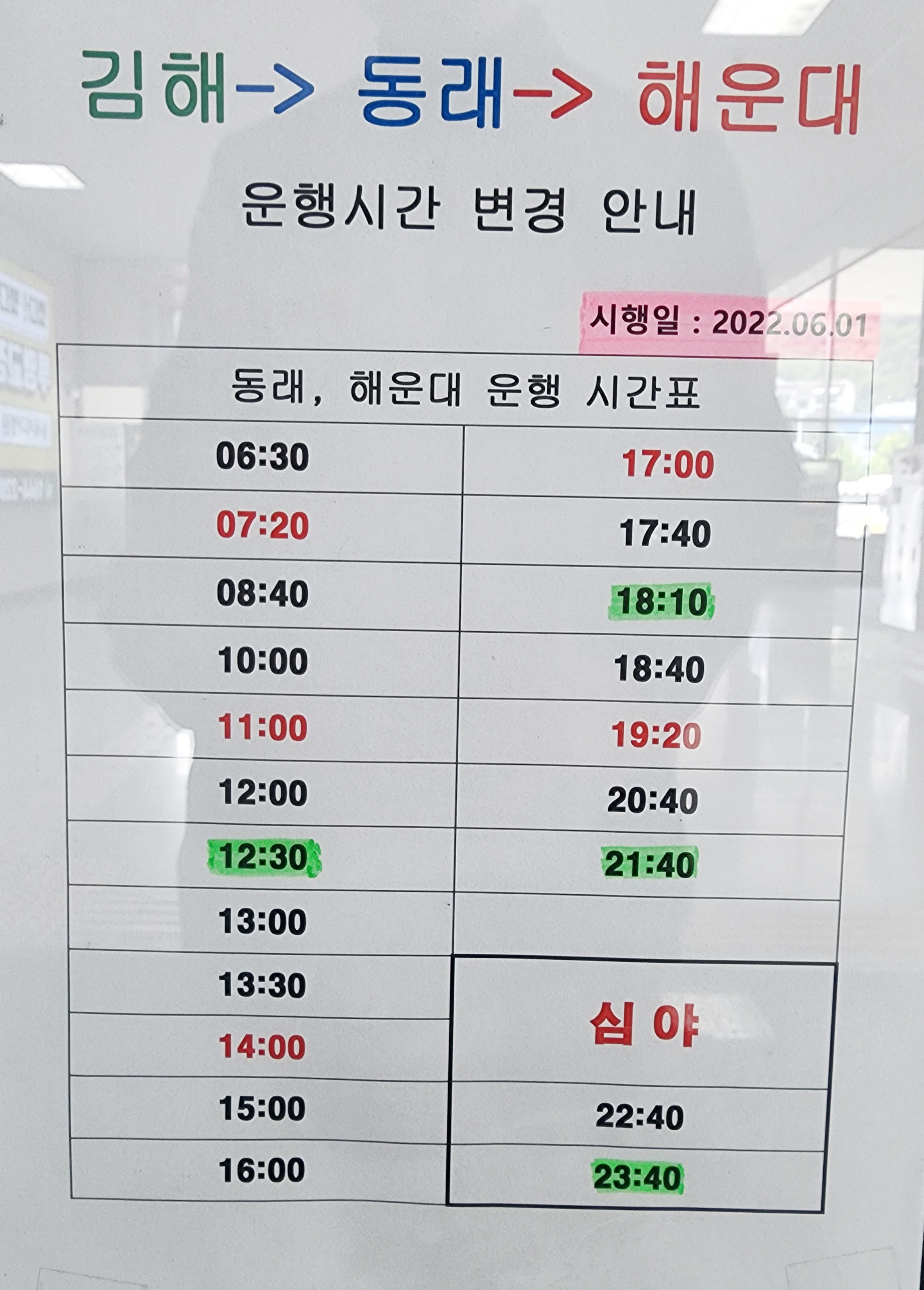 2022년 6월 1일 시행 김해 동해 해운대 시간표