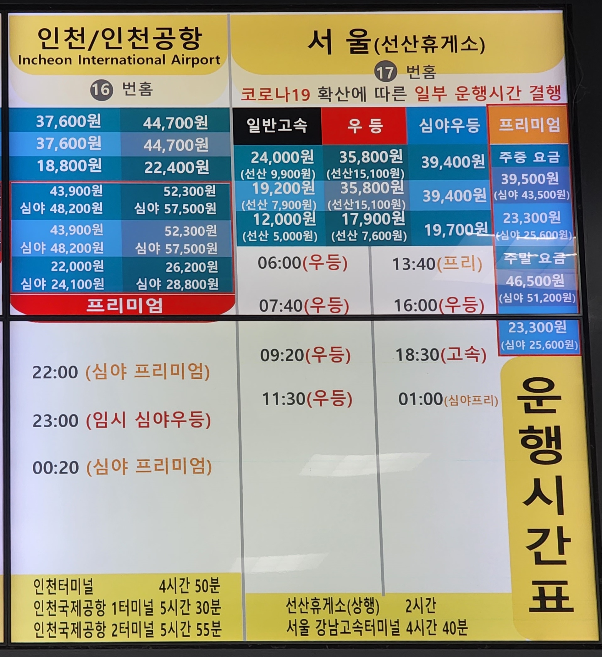 김해 출발 구미, 성남, 오산, 수원, 안산 방면 14번 홈