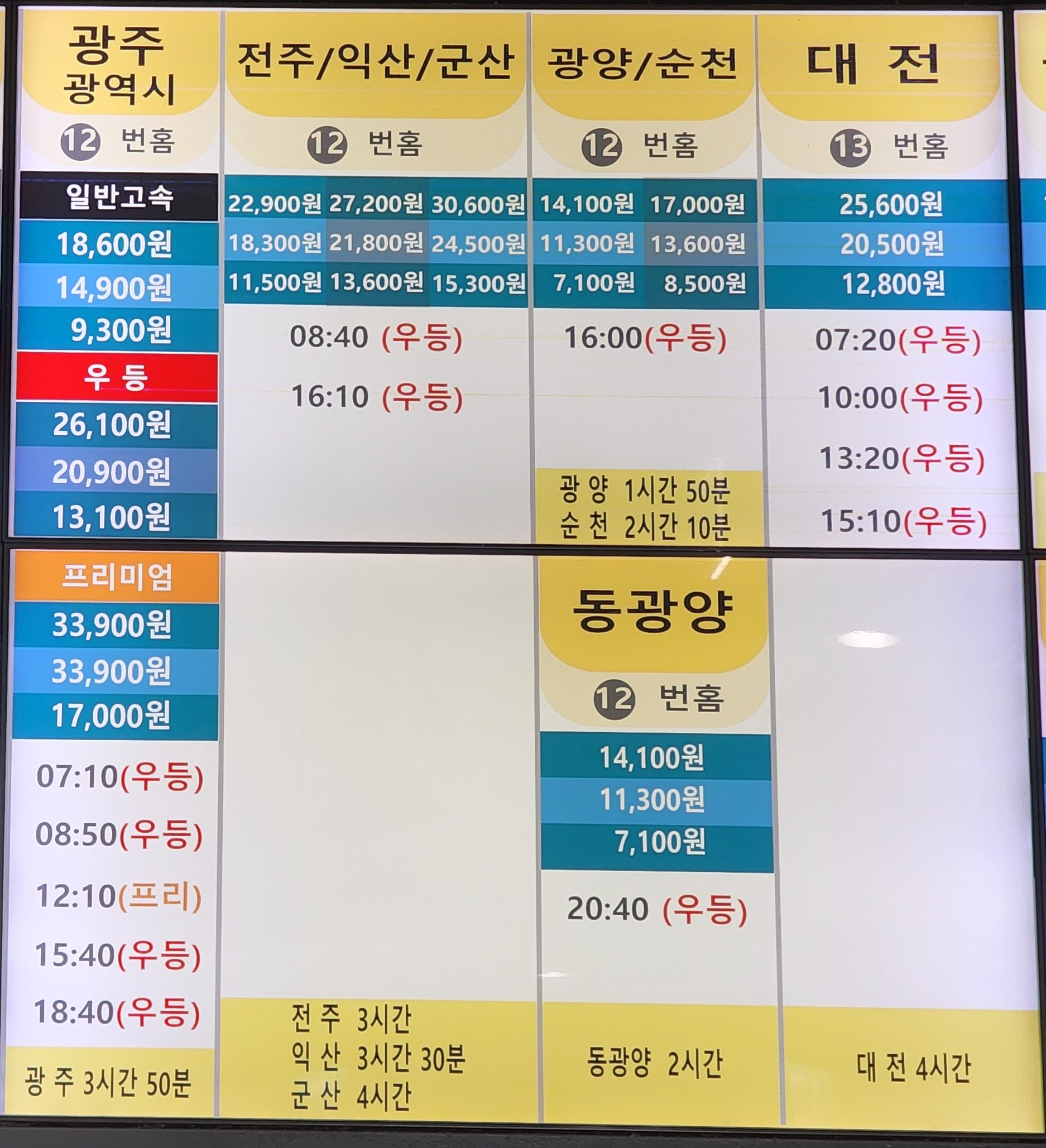 김해 출발 광양, 동광양, 순천 방면 12번 홈
