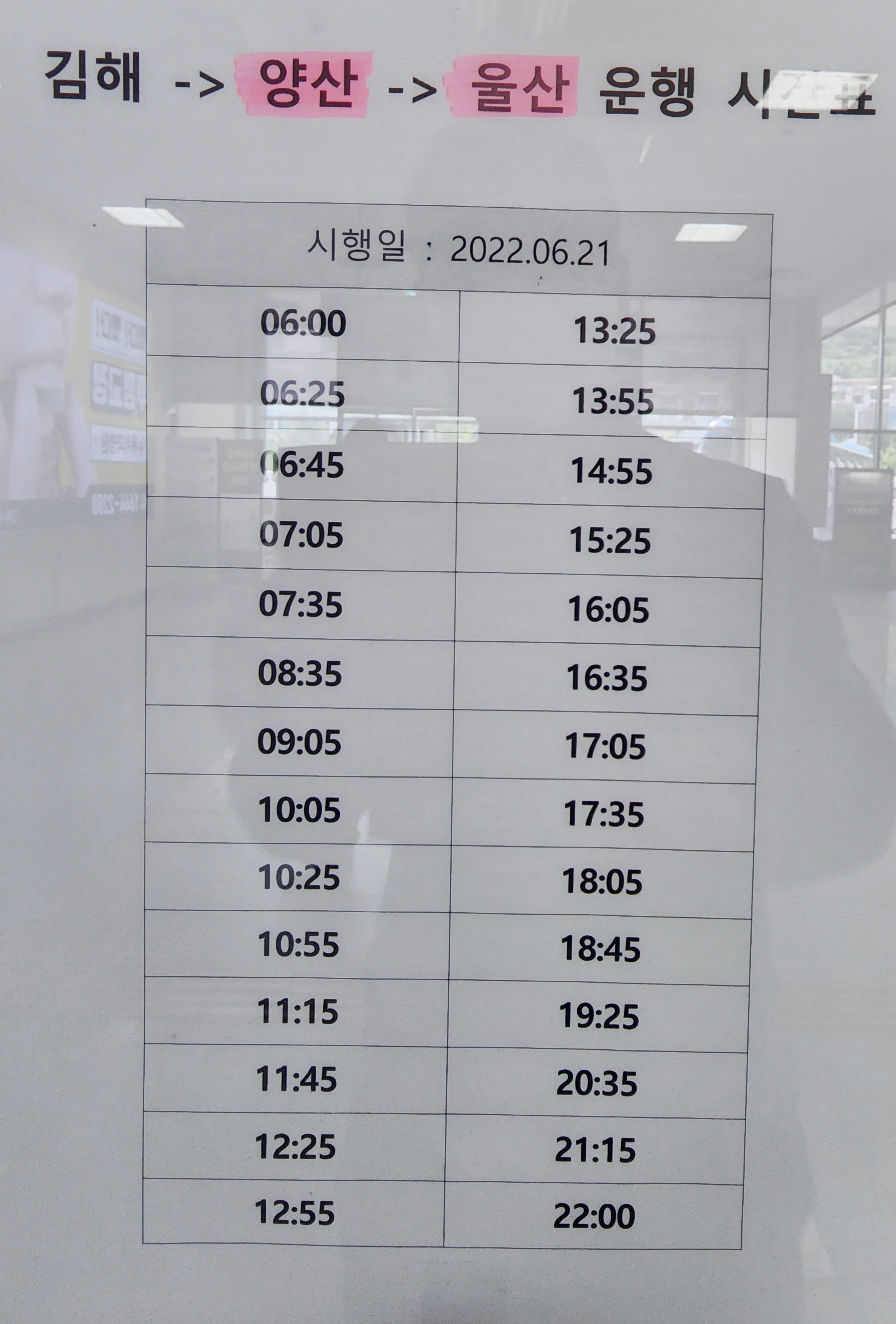 2022년 6월 21일 시행 김해 양산 울산 운행 시간표