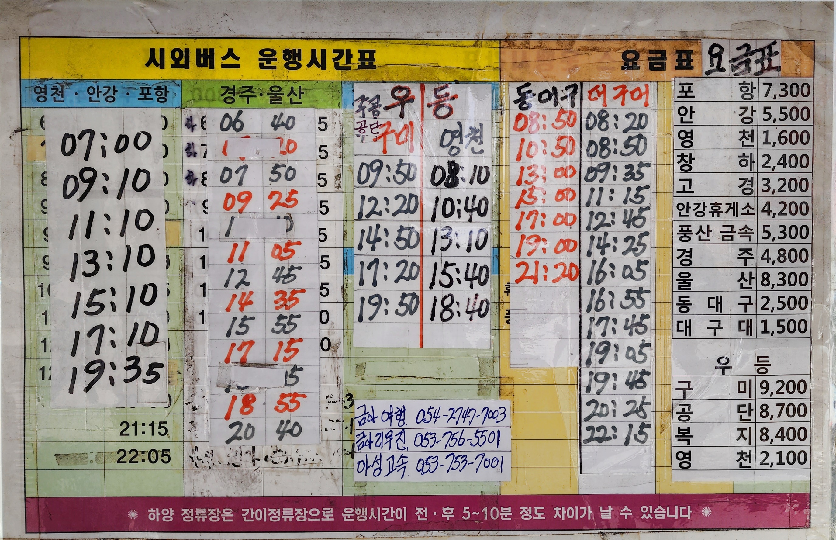 하양 출발 영천, 안강, 포항, 경주, 울산, 구미,동대구, 대구대 방면.
