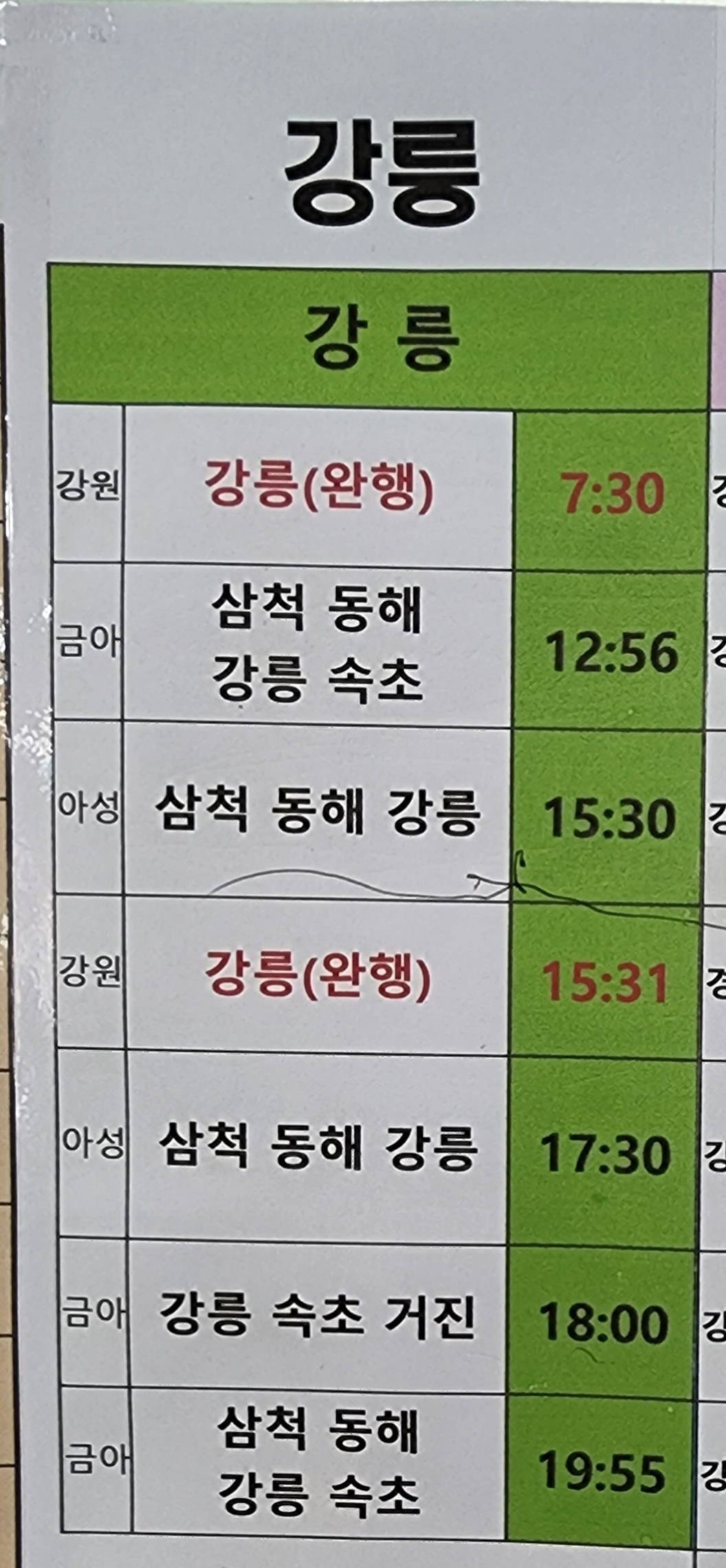 울진 출발 강릉, 삼척, 동해, 속초, 거진 방면.