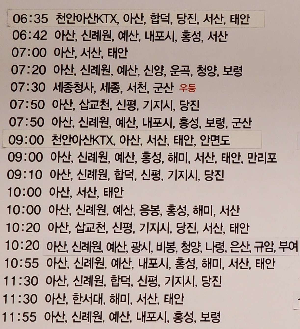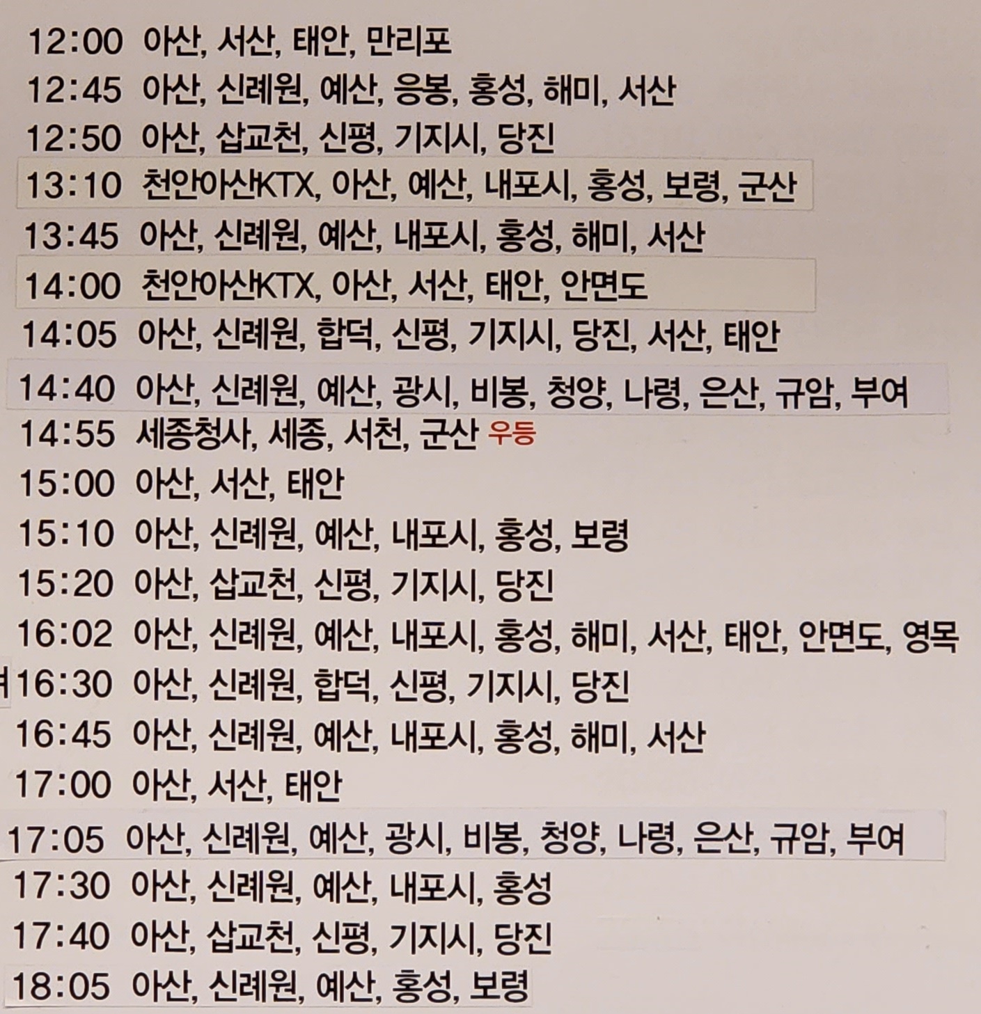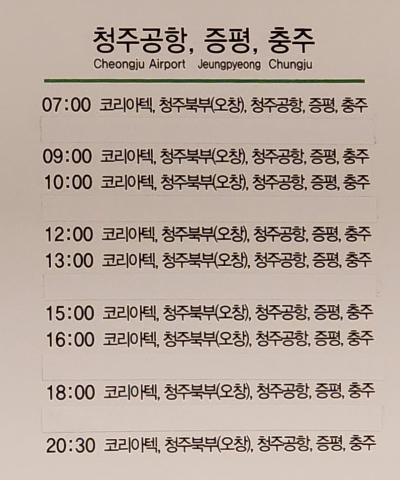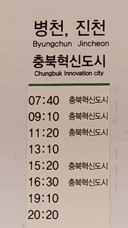 천안 출발 병천, 진천, 충북혁신도시 방면.