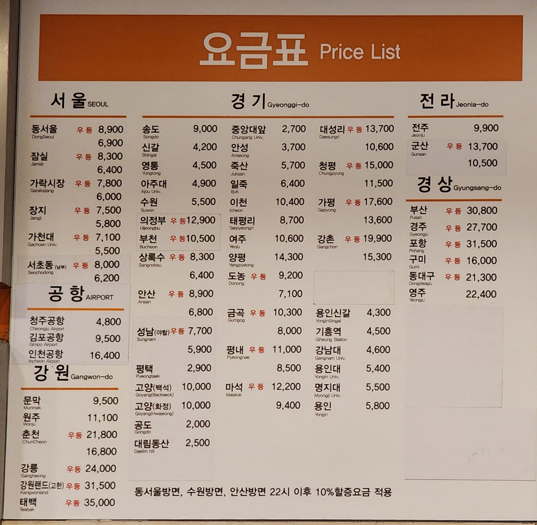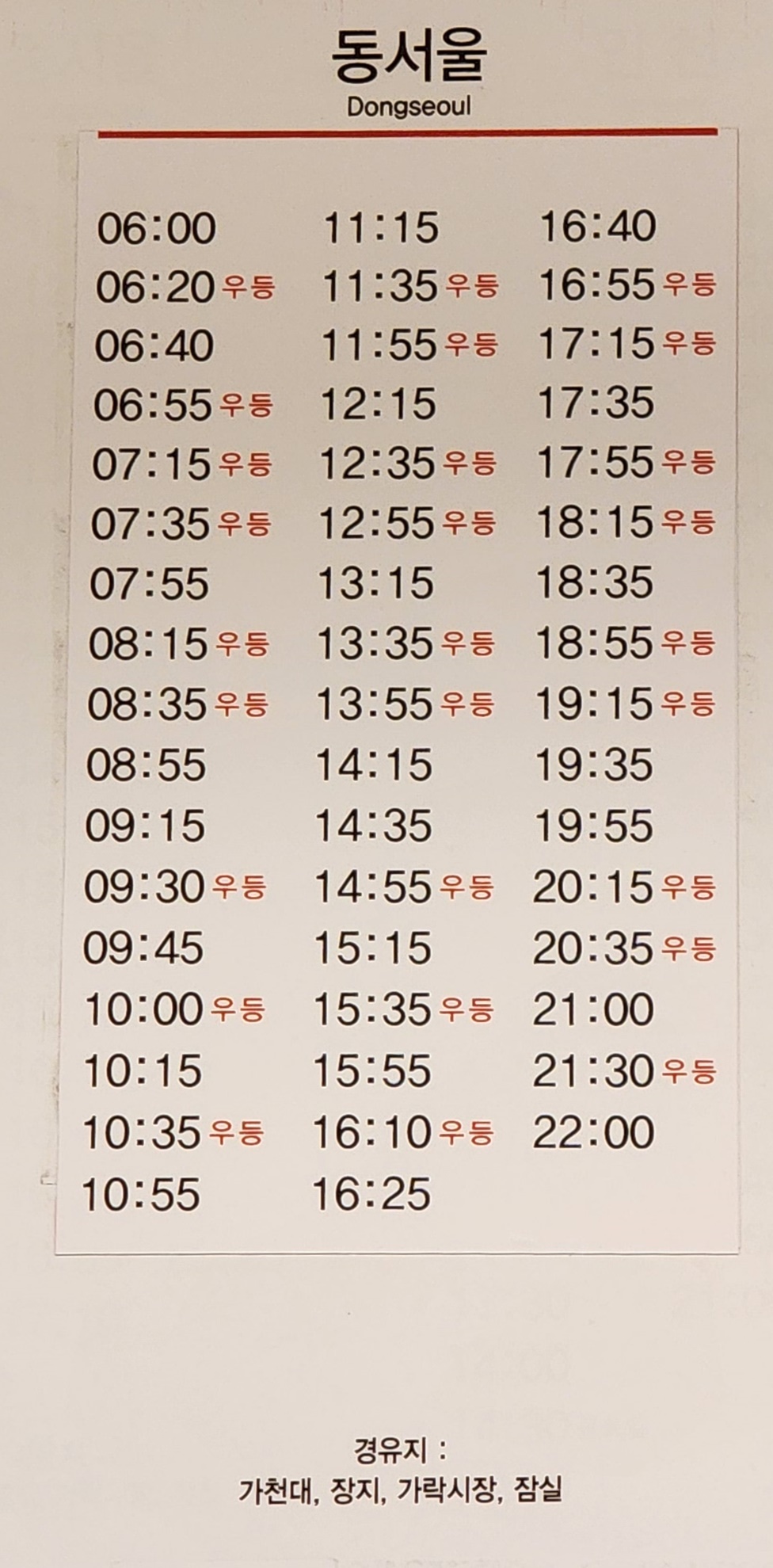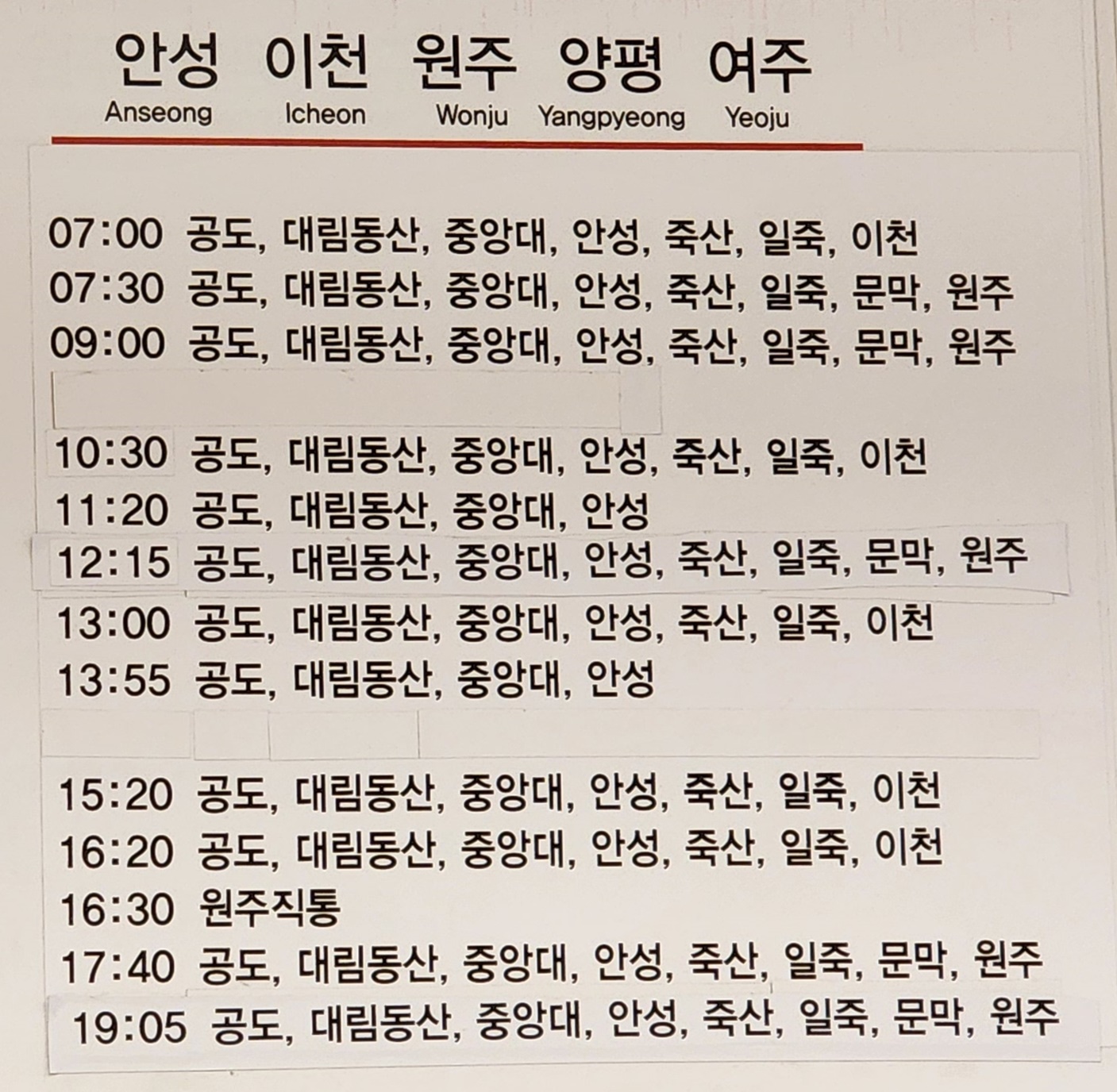 천안 출발 안성, 이천, 원주, 양평, 여주 방면.