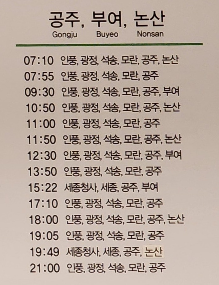 천안 출발 용인신갈, 기흥역, 강남대, 용인대, 명지대 방면.