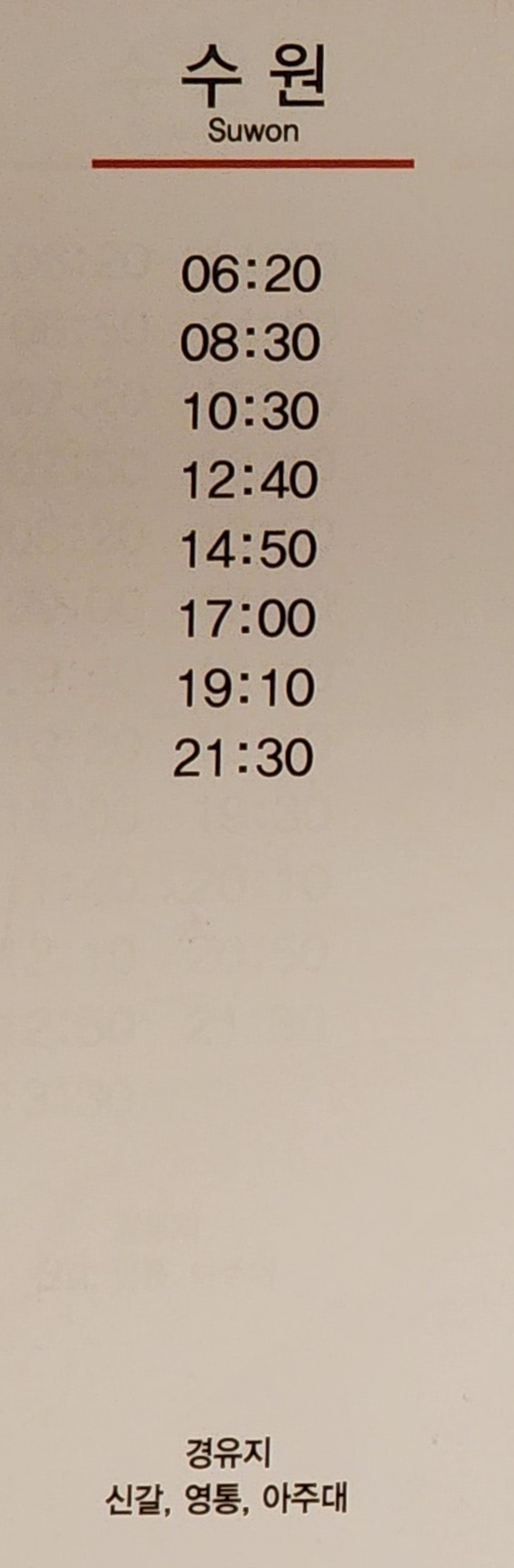 천안 출발 수원, 신갈, 영통, 아주대 방면.