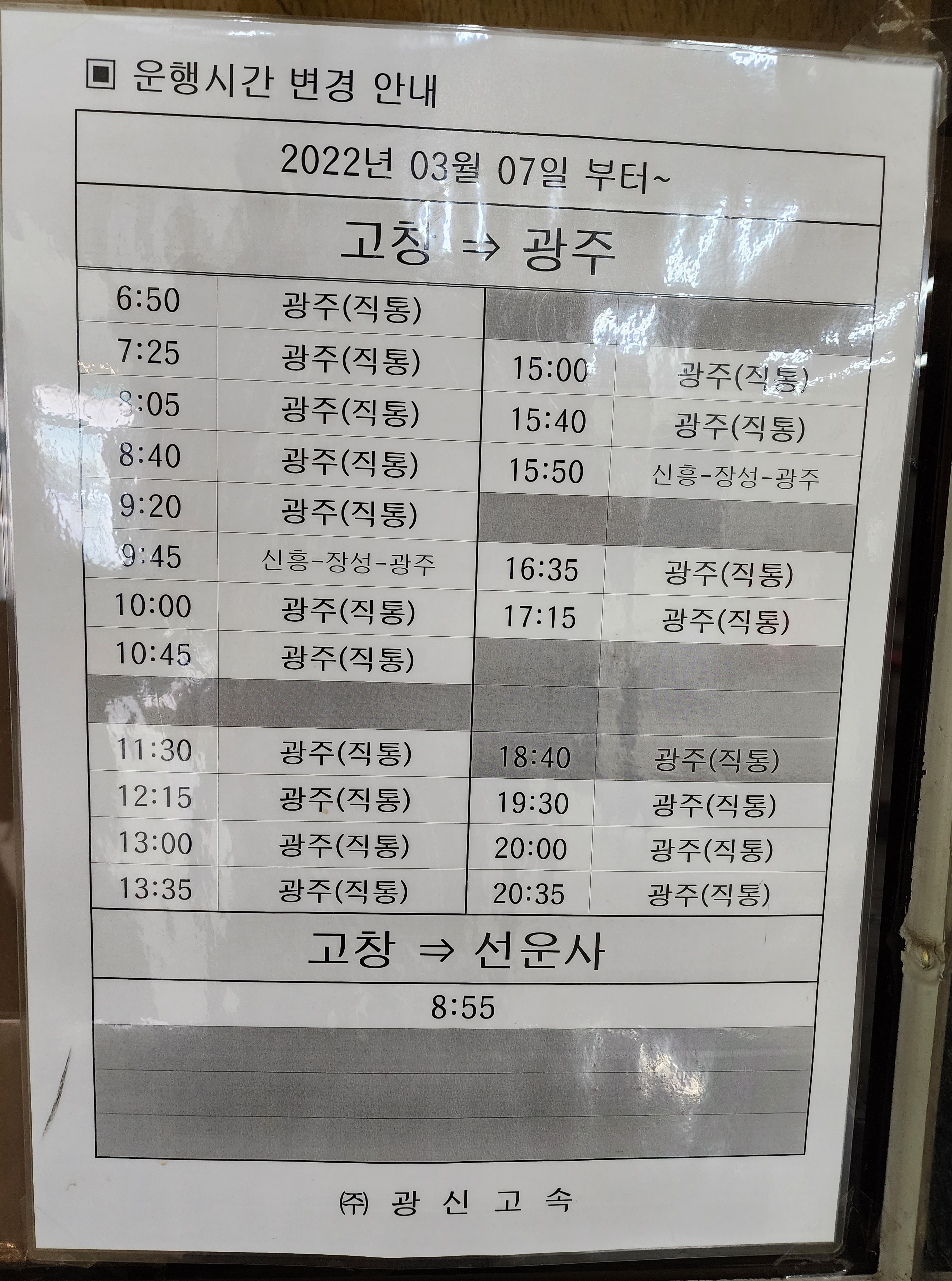 고창 출발 광주 방면.