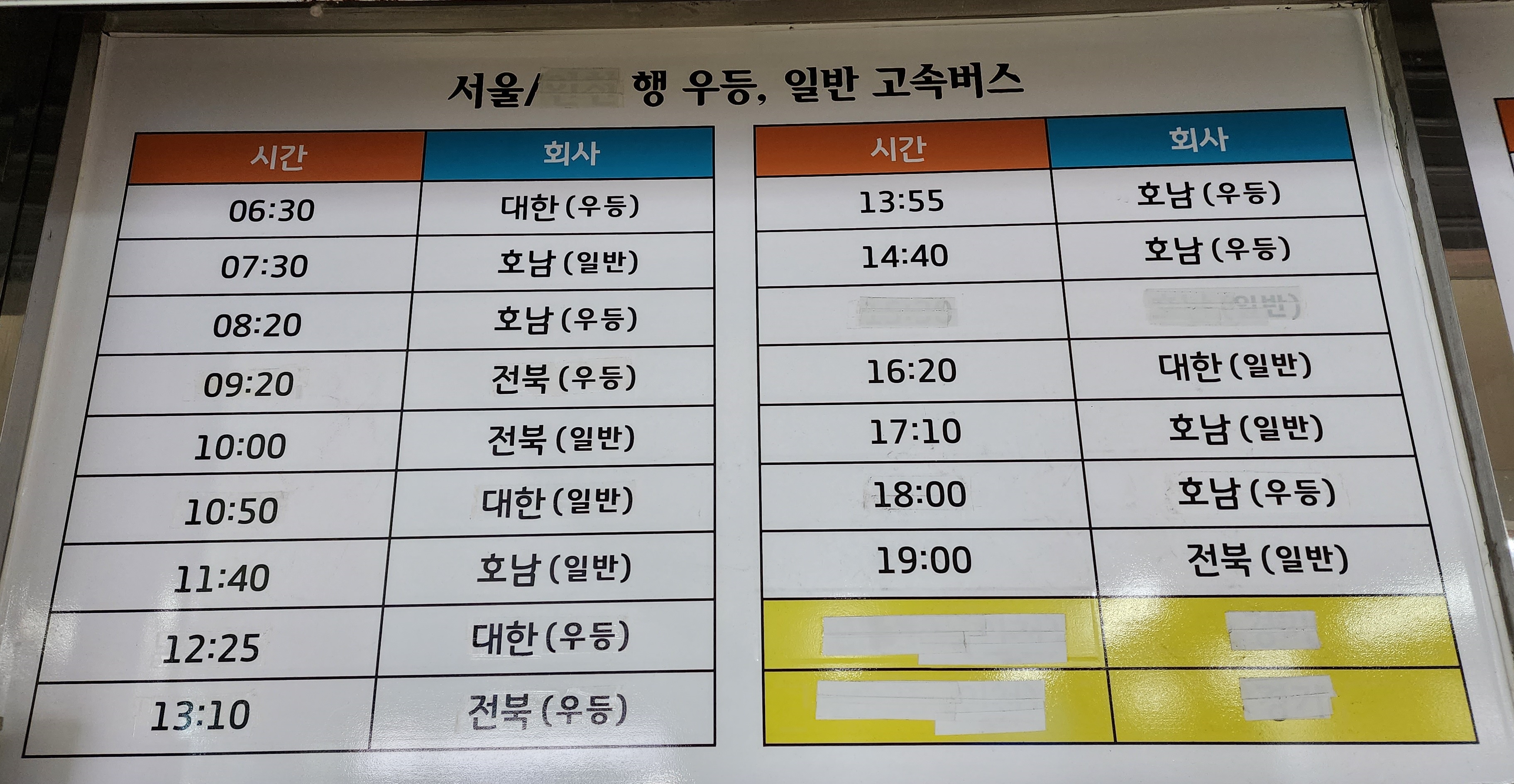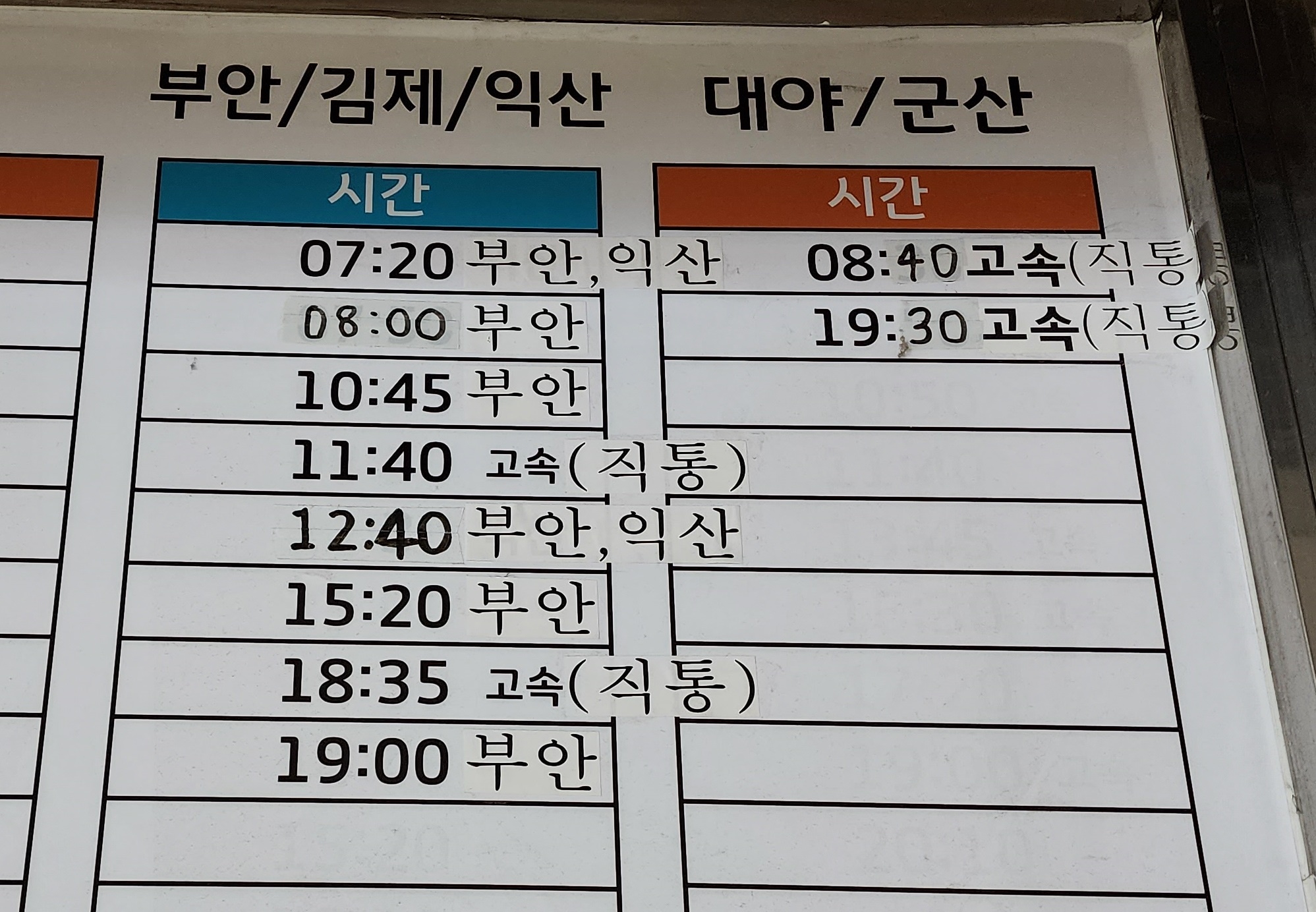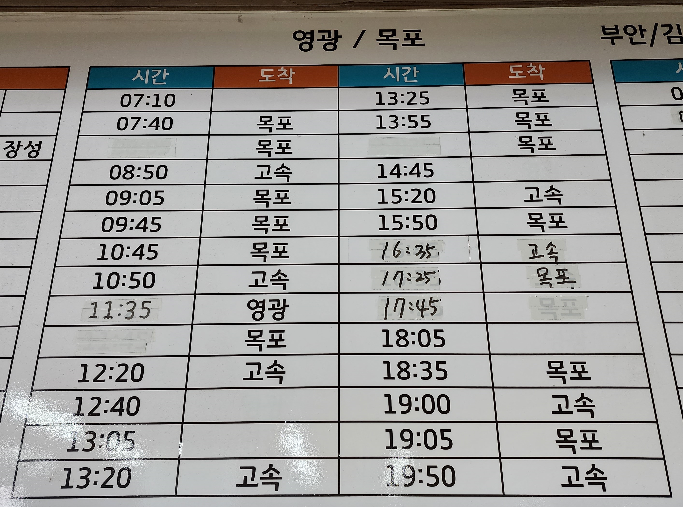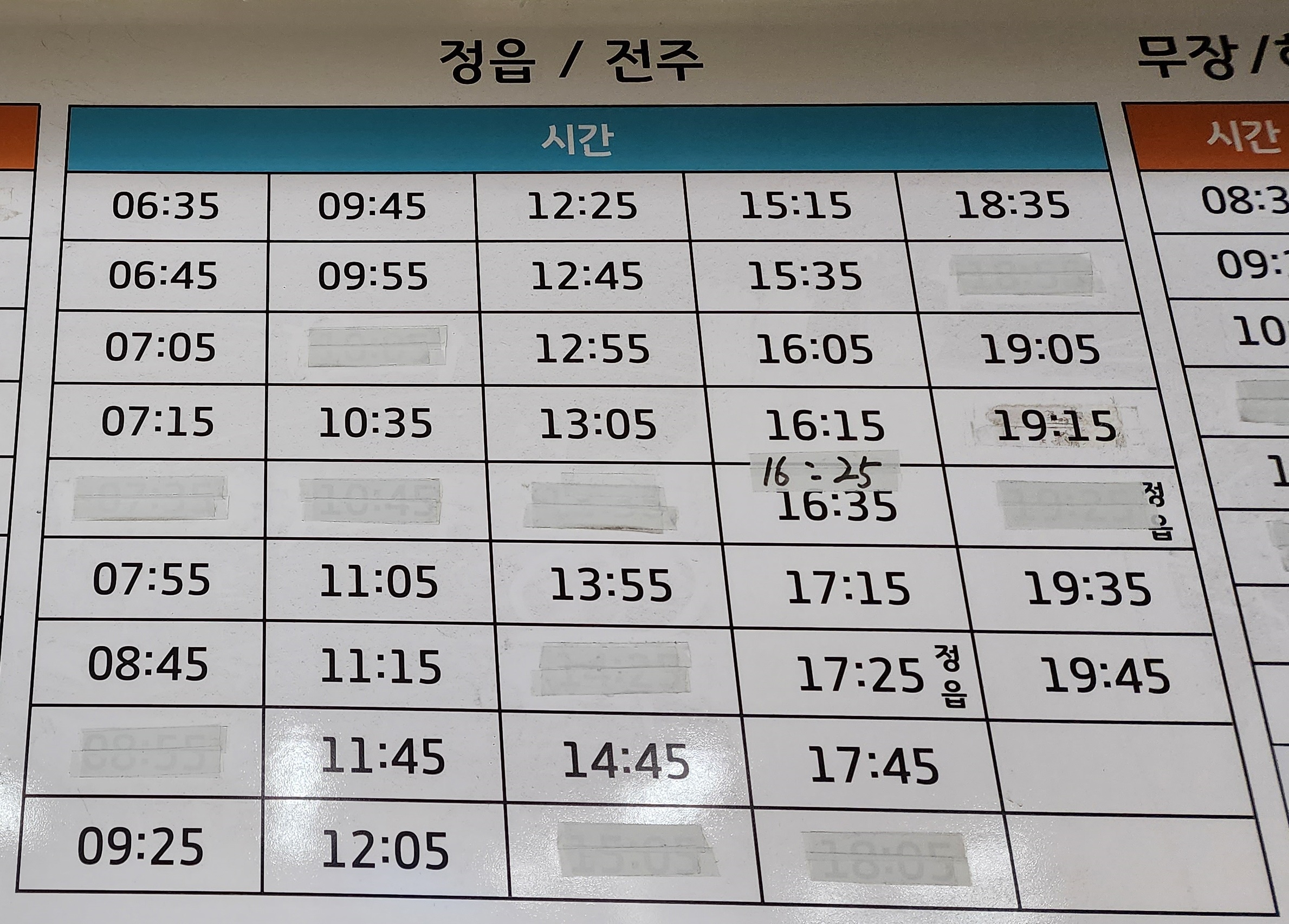 고창시외버스터미널 시간표 고창문화터미널