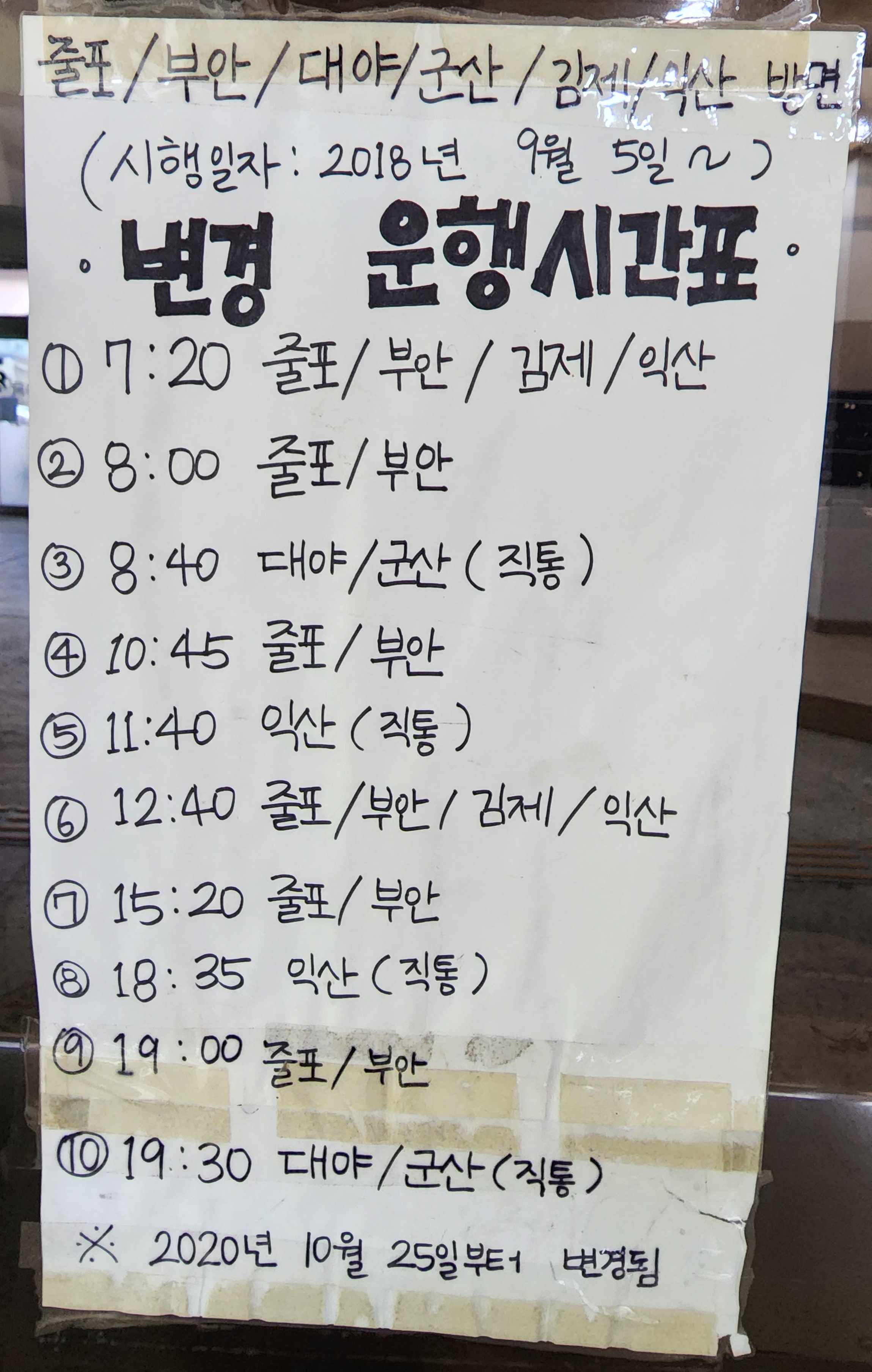 고창 출발 줄포, 부안, 대야, 군산, 김제, 익산 방면.