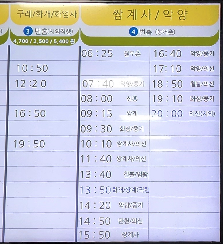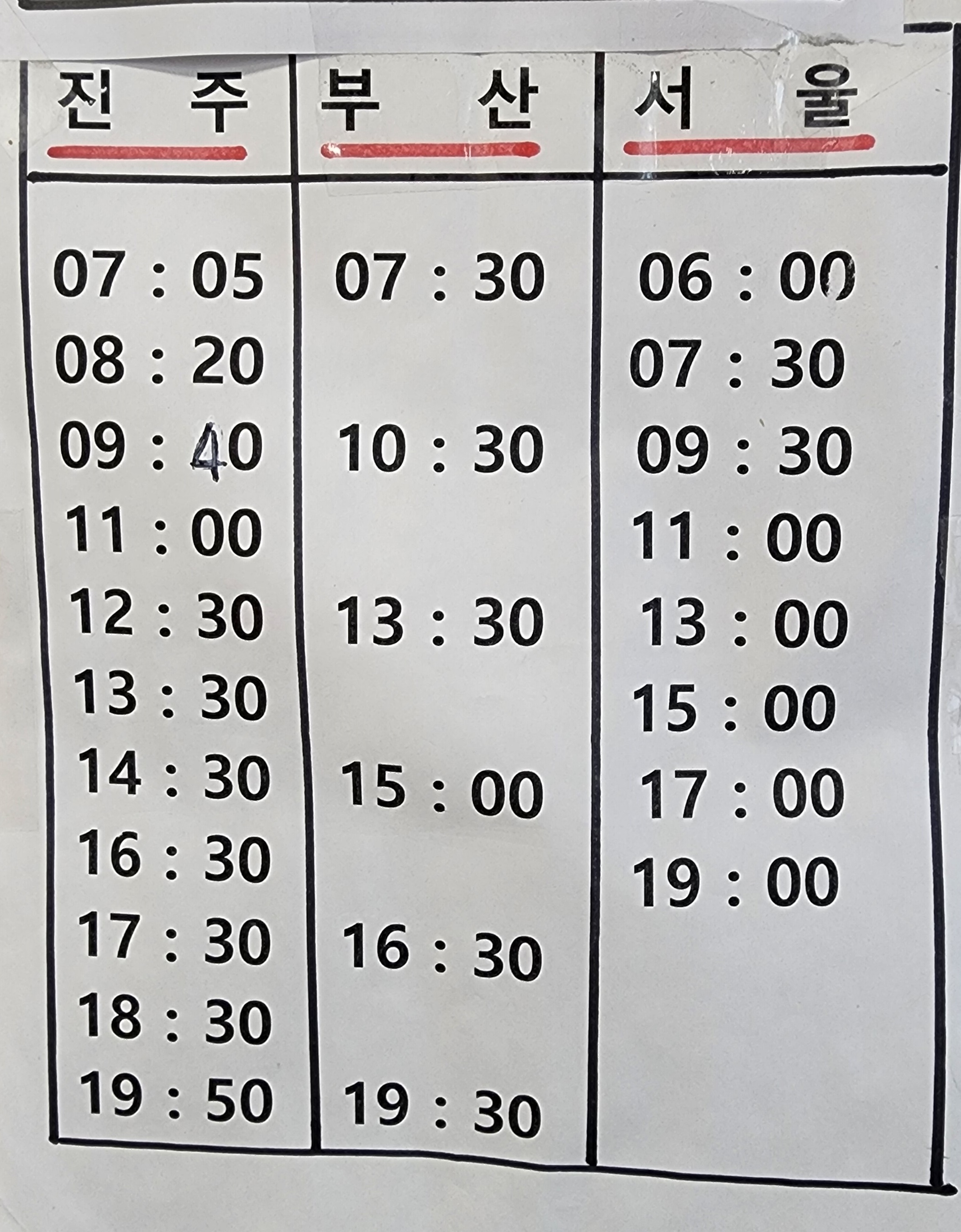 하동 출발 부산, 진주, 서울 남부터미널 방면.