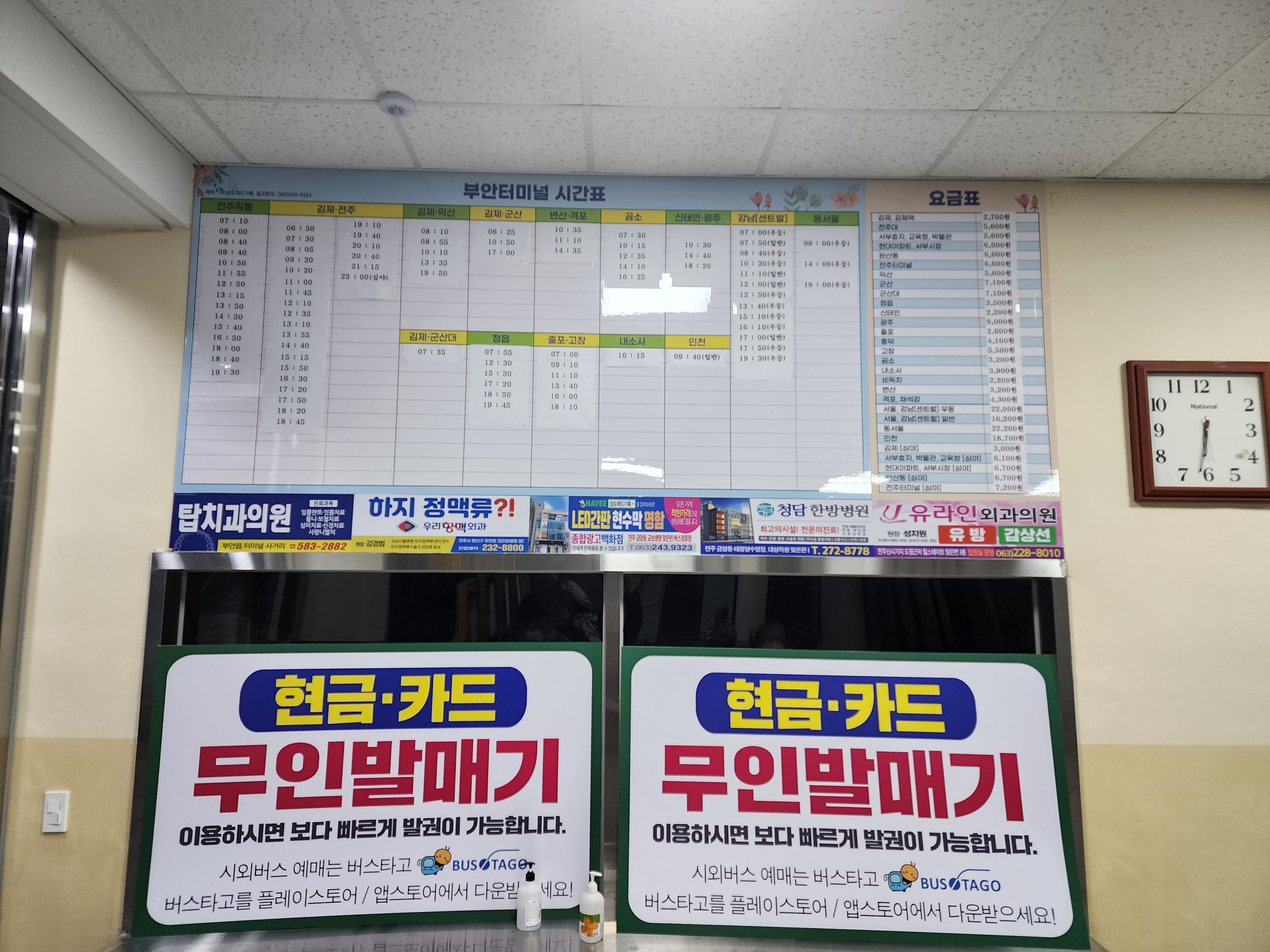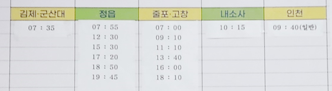 부안 출발 김제. 익산, 군산, 변산, 격포, 곰소, 신태인, 광주 방면.
