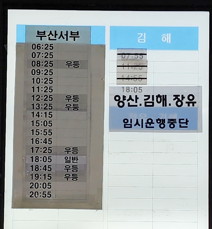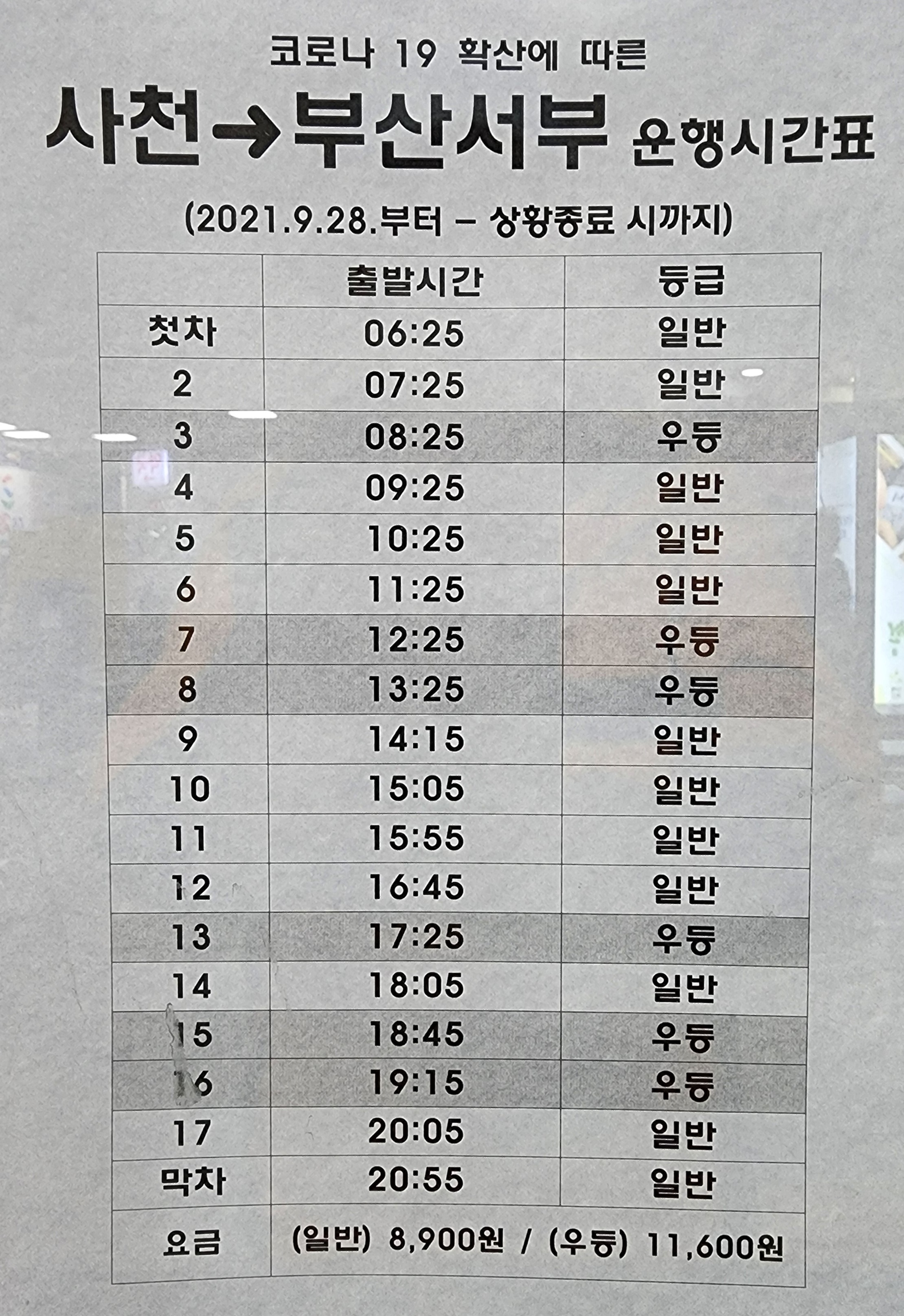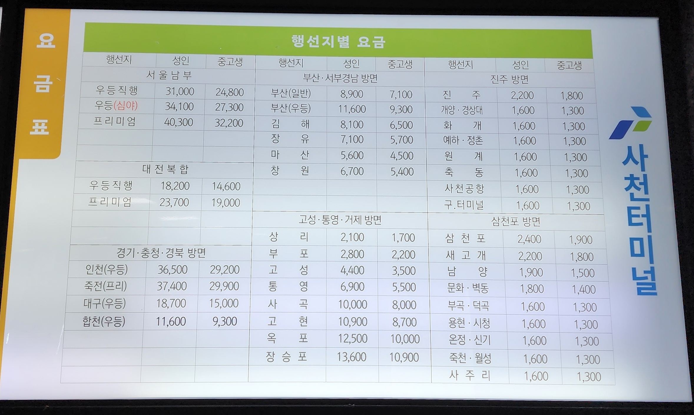 사천 출발 마산, 창원, 고성, 통영, 고현, 장승포 방면.