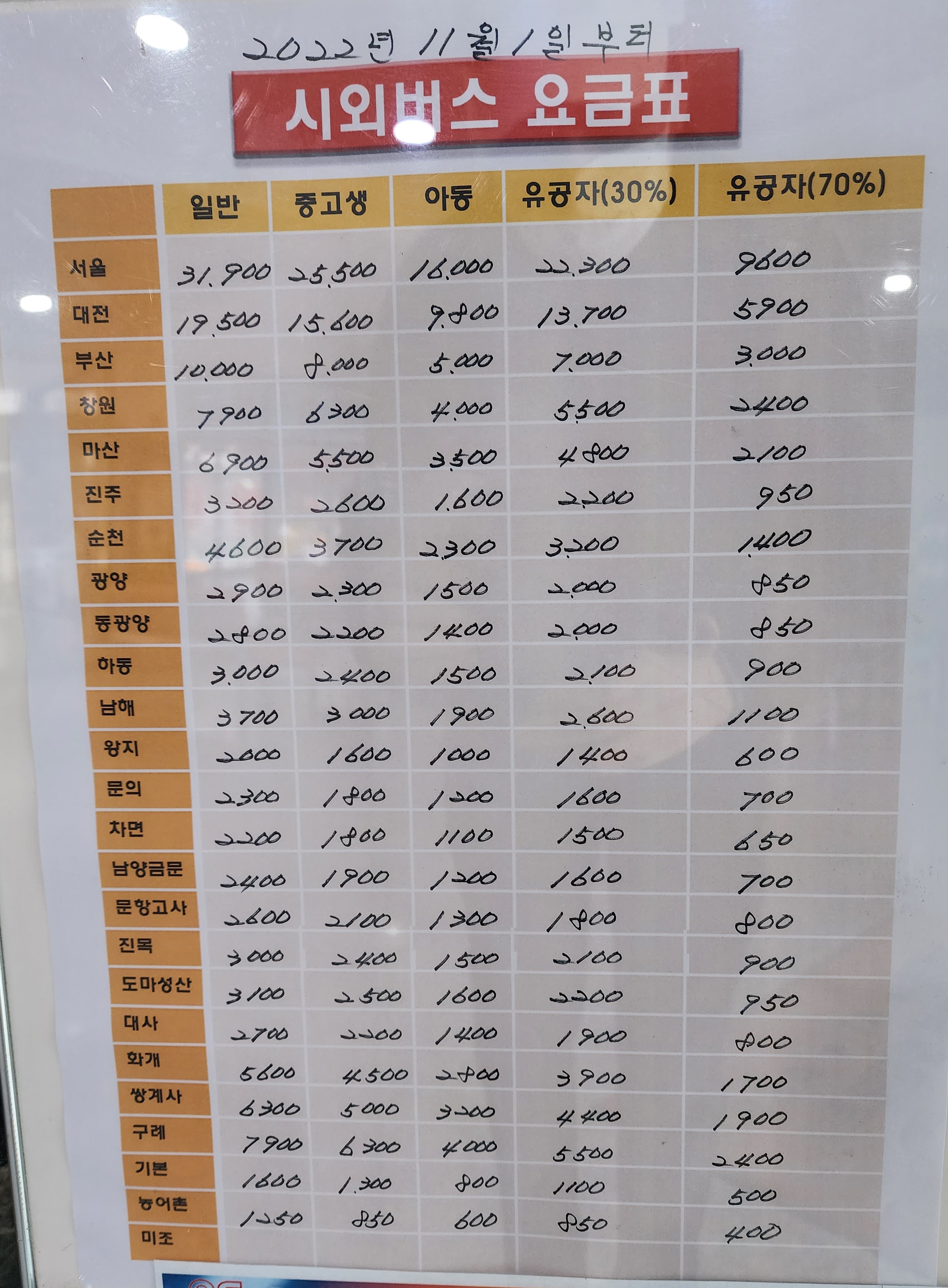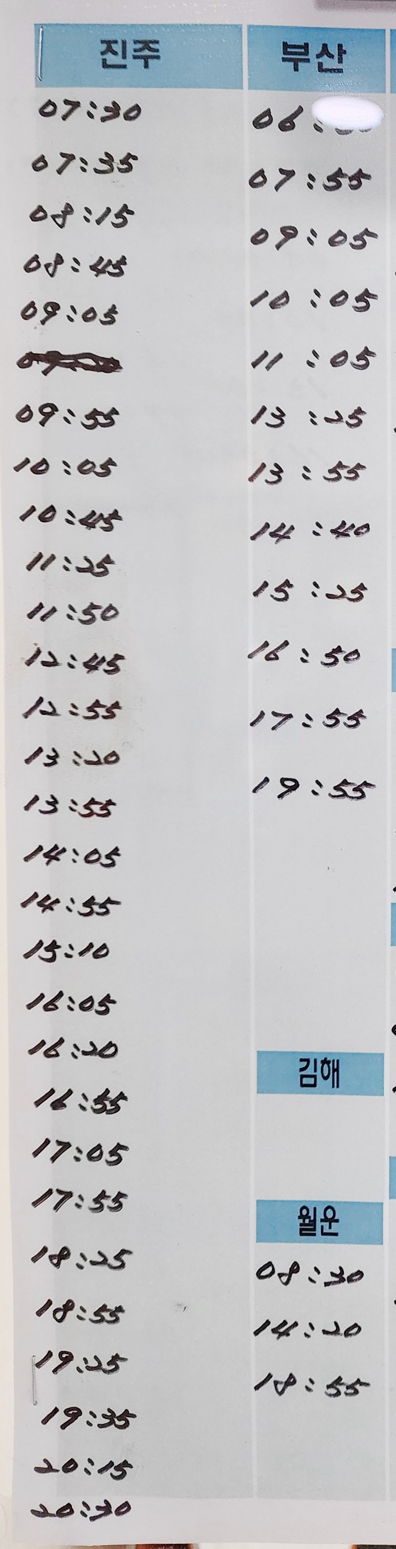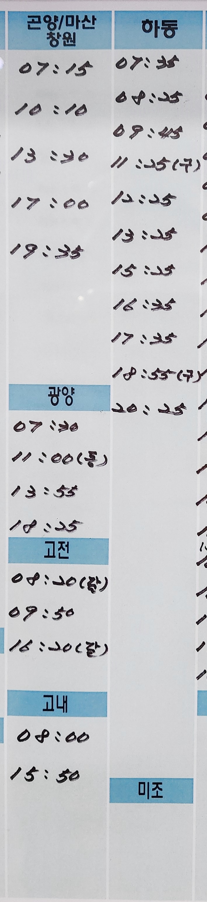 진교 출발 광양, 고전, 고내, 곤양, 마산, 창원, 하동 방면.
