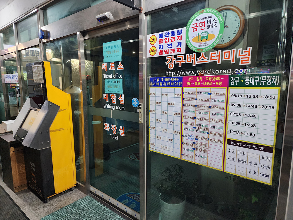 영덕 강구 출발 동대구, 오산, 수원, 서수원, 안산, 인천 방면.