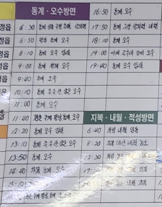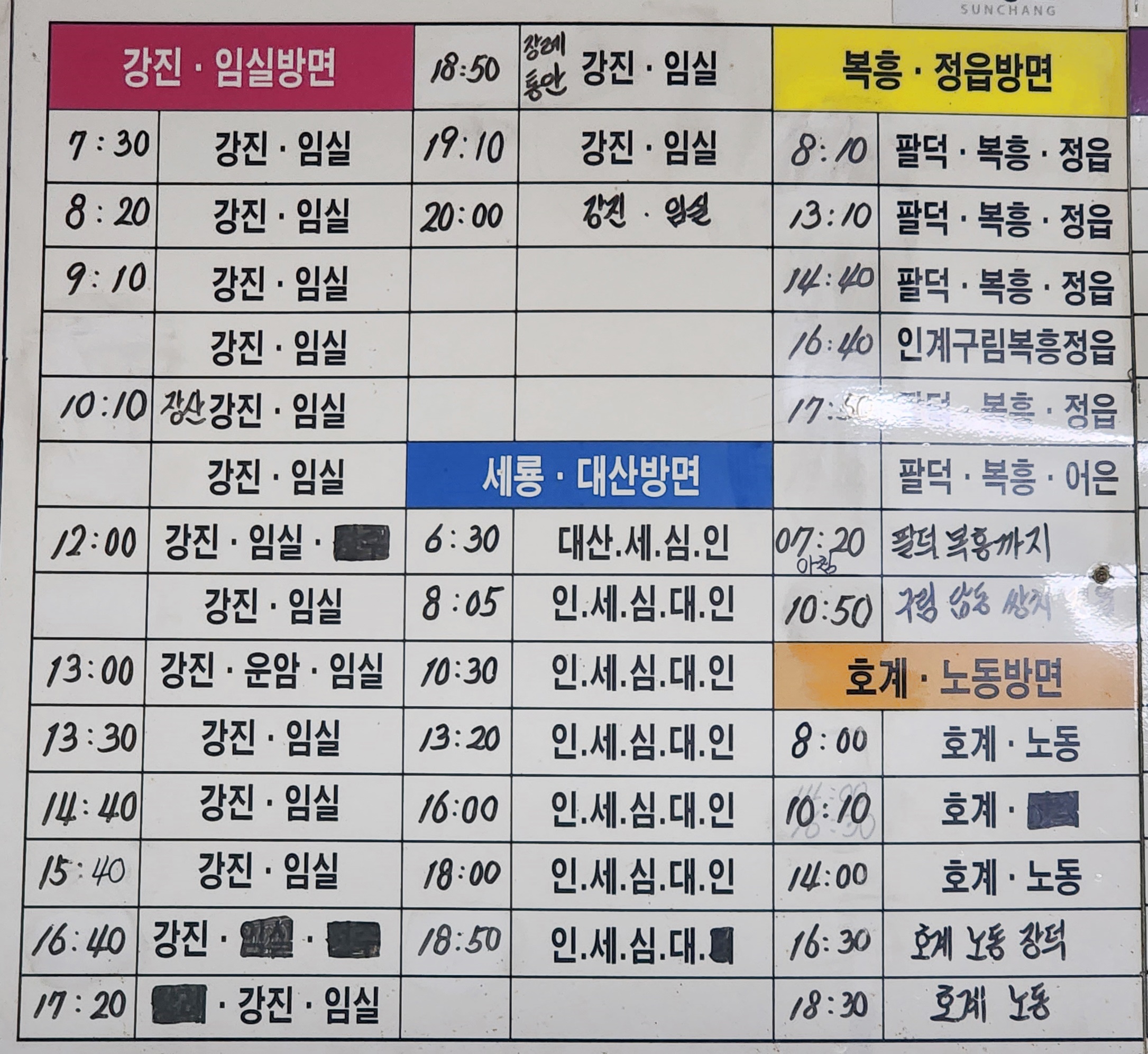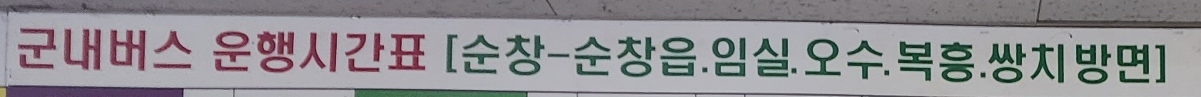 순창 출발 순창읍, 임실, 오수, 복흥, 쌍치 방면.