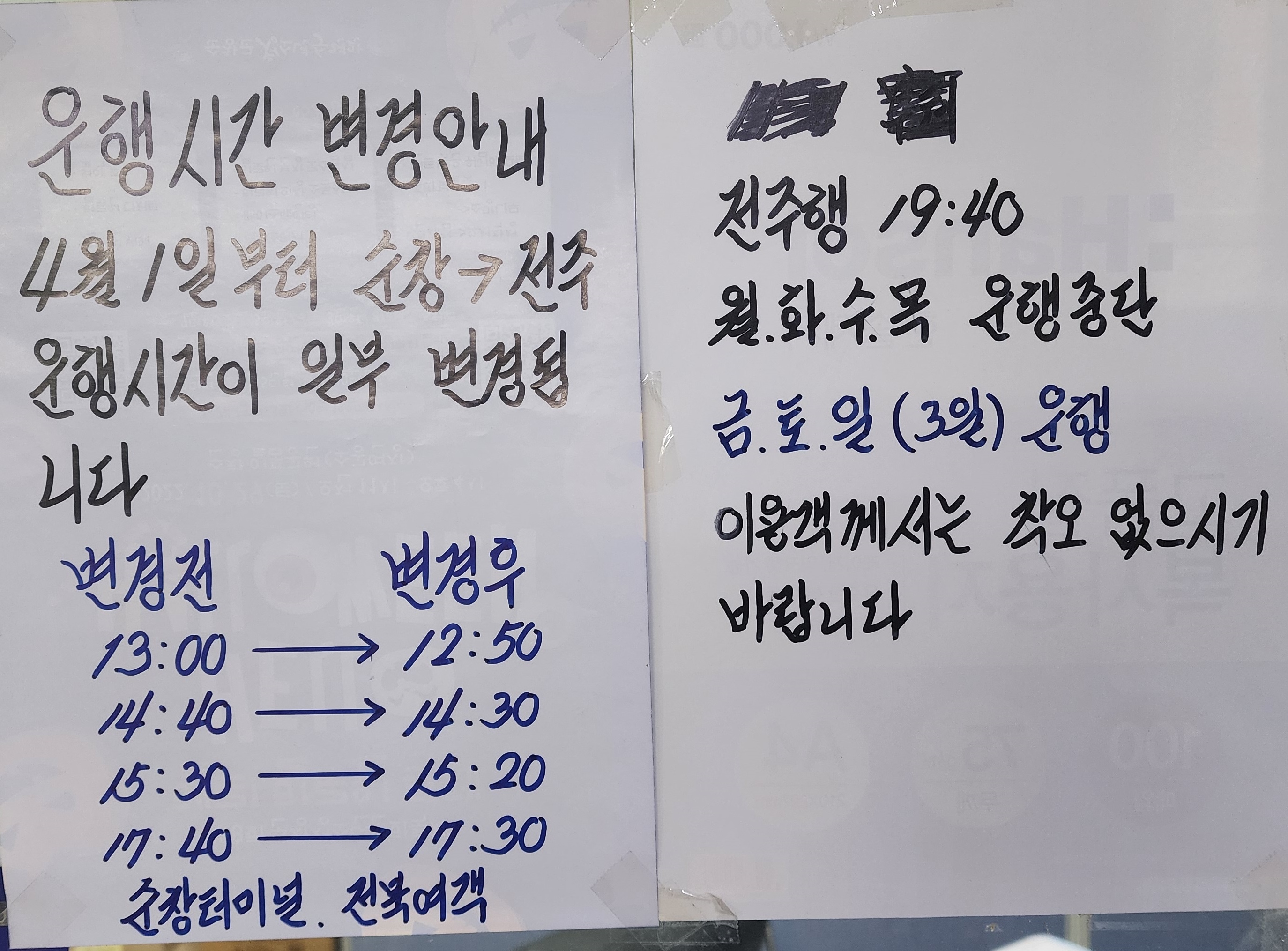 순창시외버스터미널 시간표 순창공용버스정류장 무료공영주차장