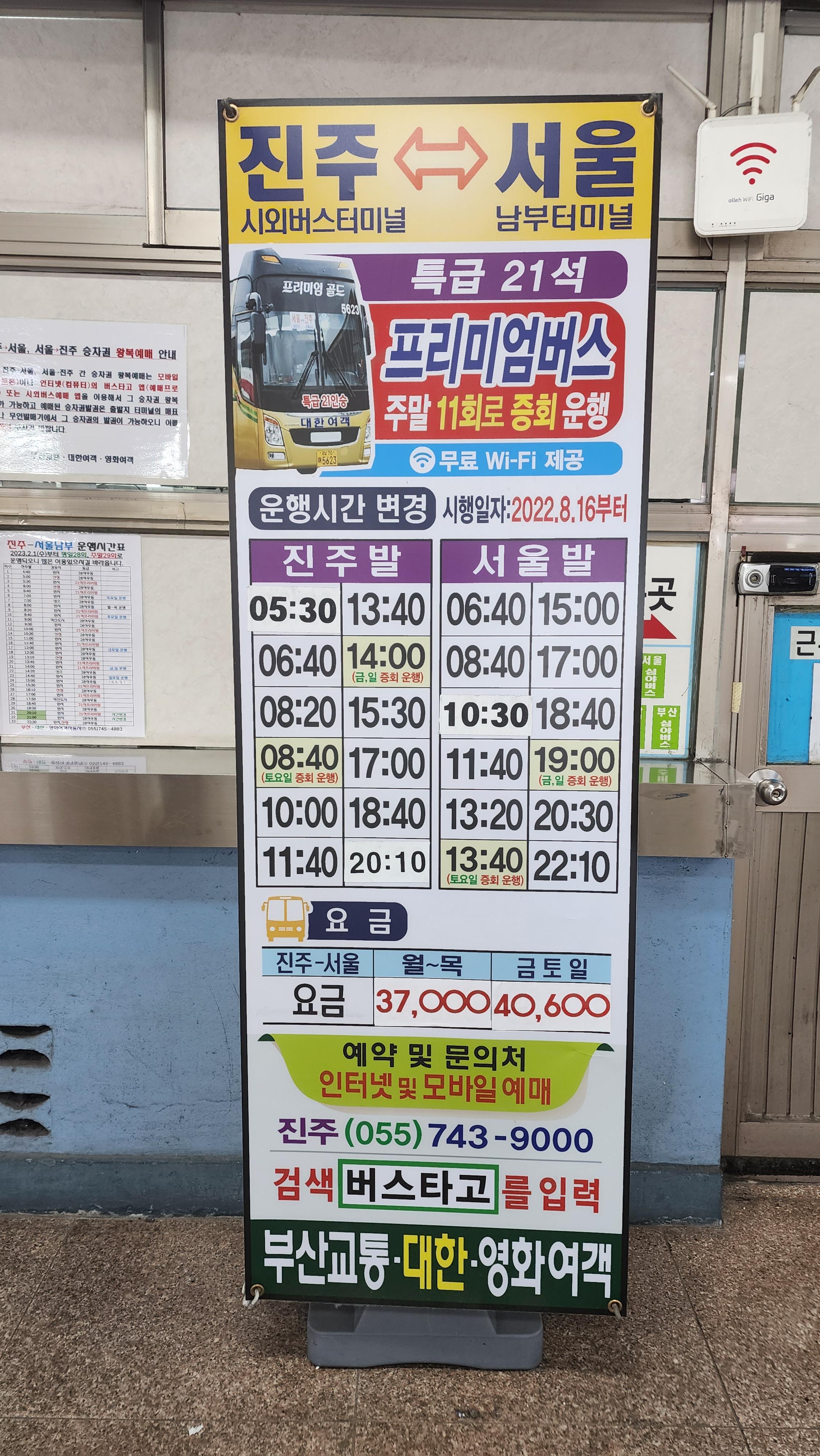 진주 출발 순천, 광양, 의령, 함안, 군북, 삼가, 송계, 대의, 대구 서부, 합천, 대전 복합터미널, 경주, 포항, 삼천포 방면.