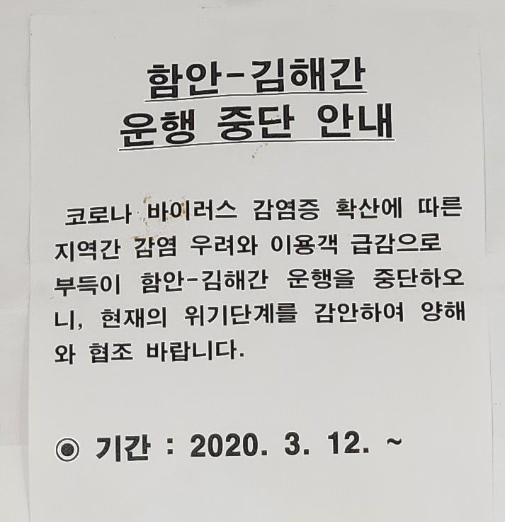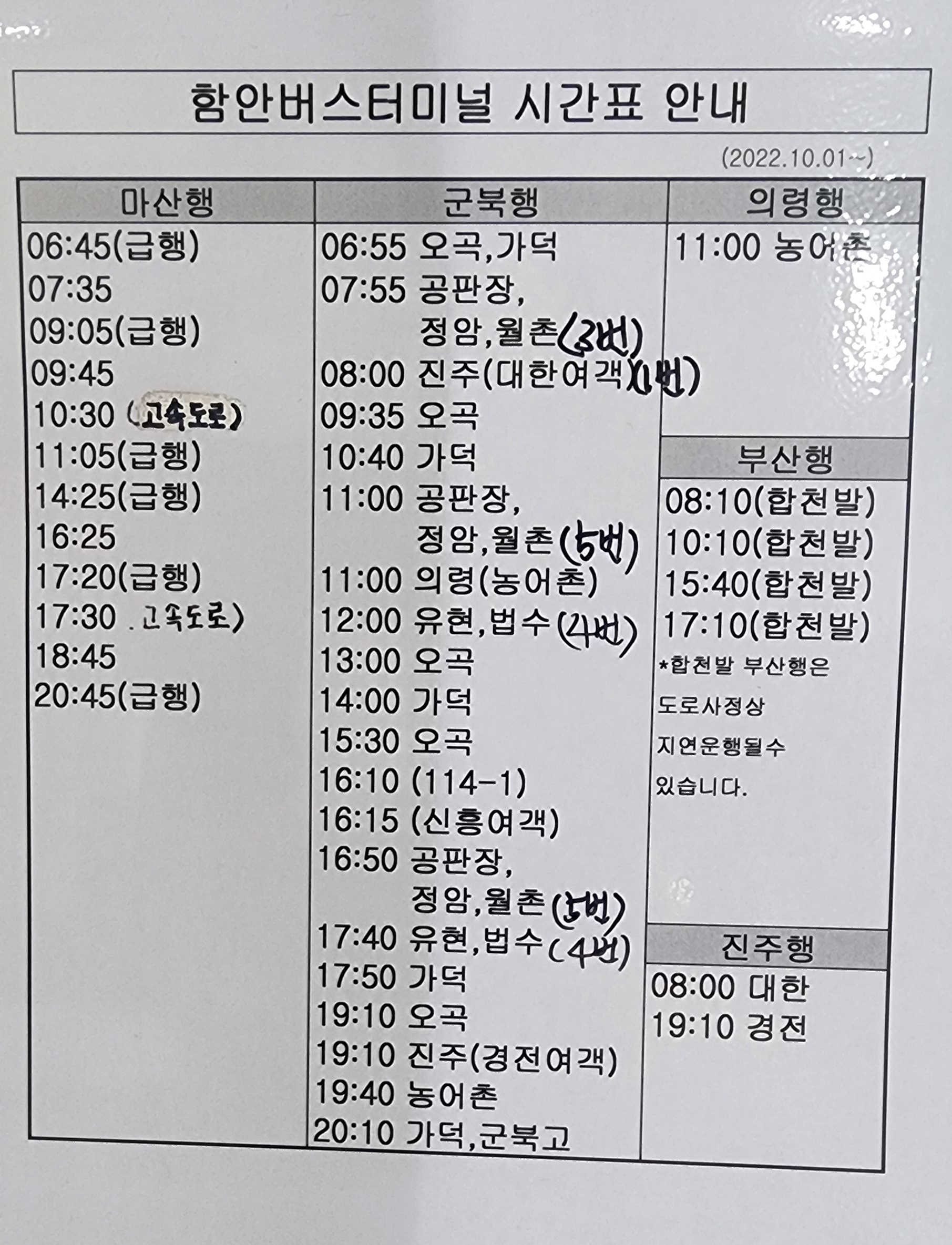 함안 출발 마산, 군북, 의령, 부산, 진주 방면.