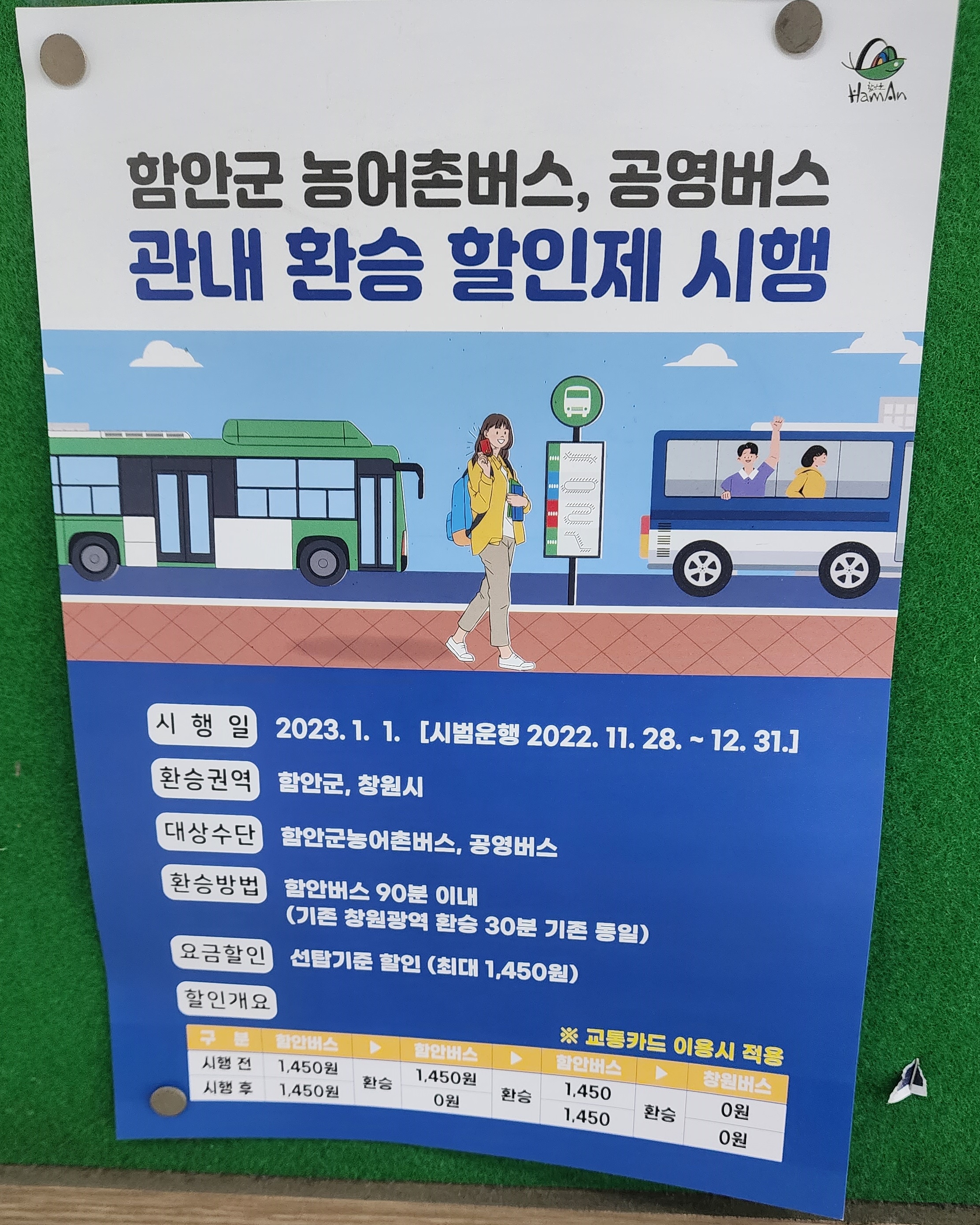 함안군 농어촌버스, 공영버스 관내 환승 할인제 시행