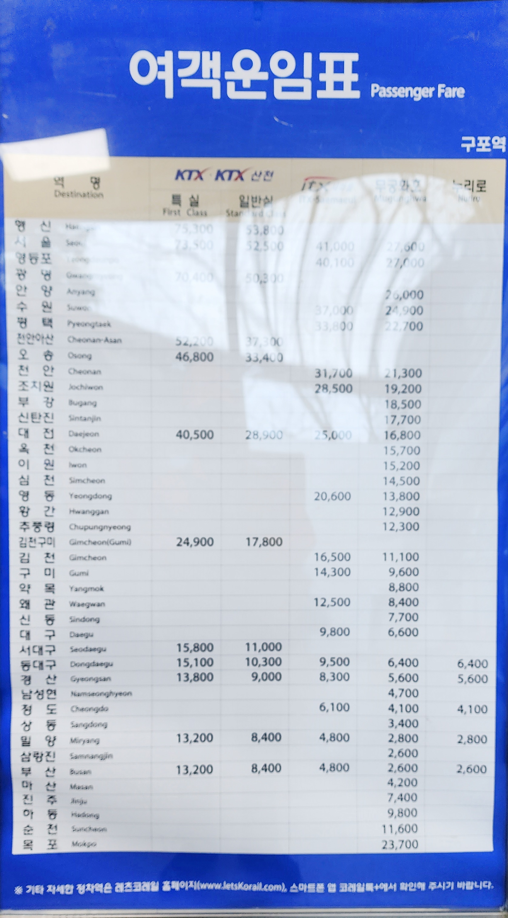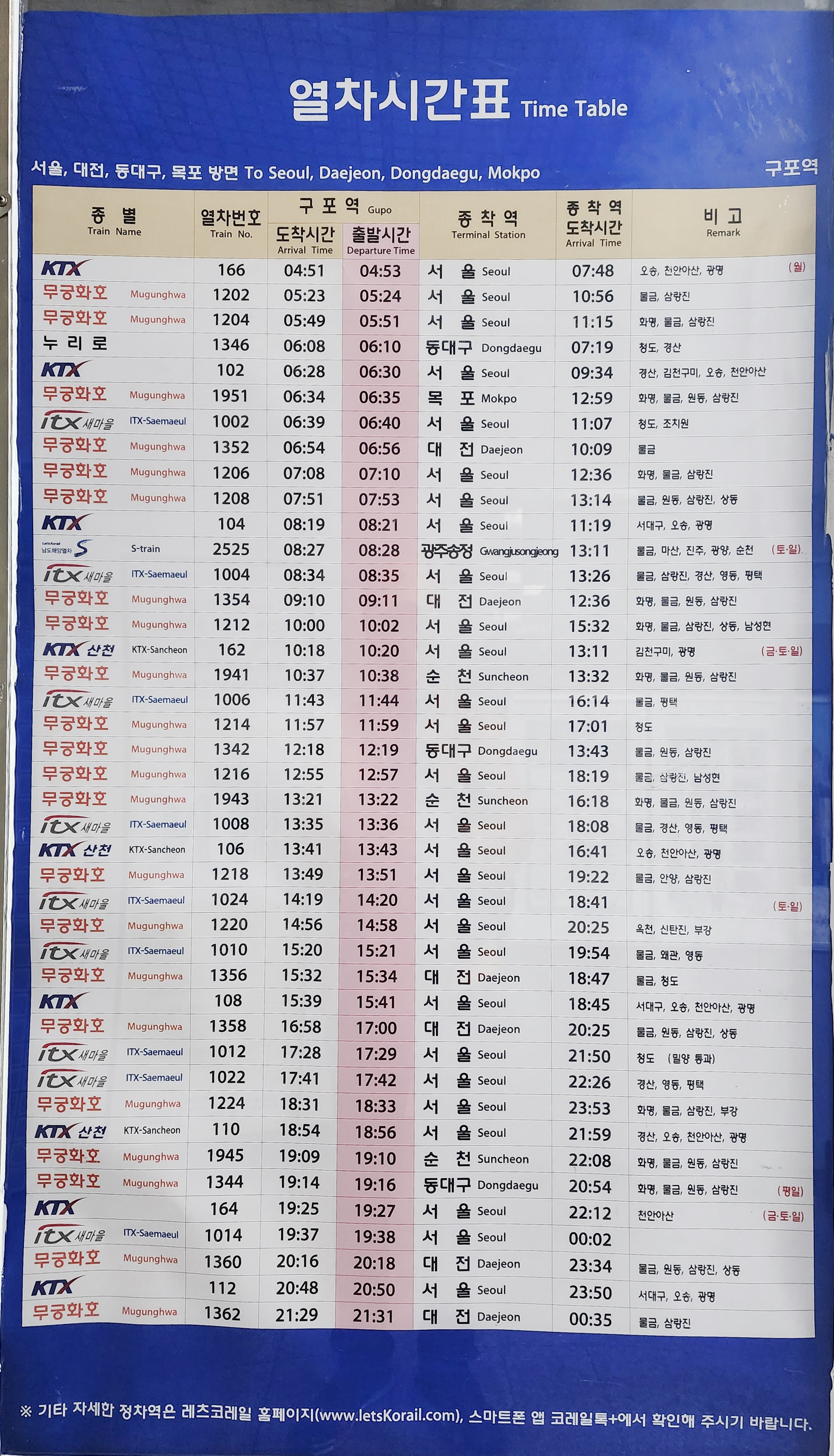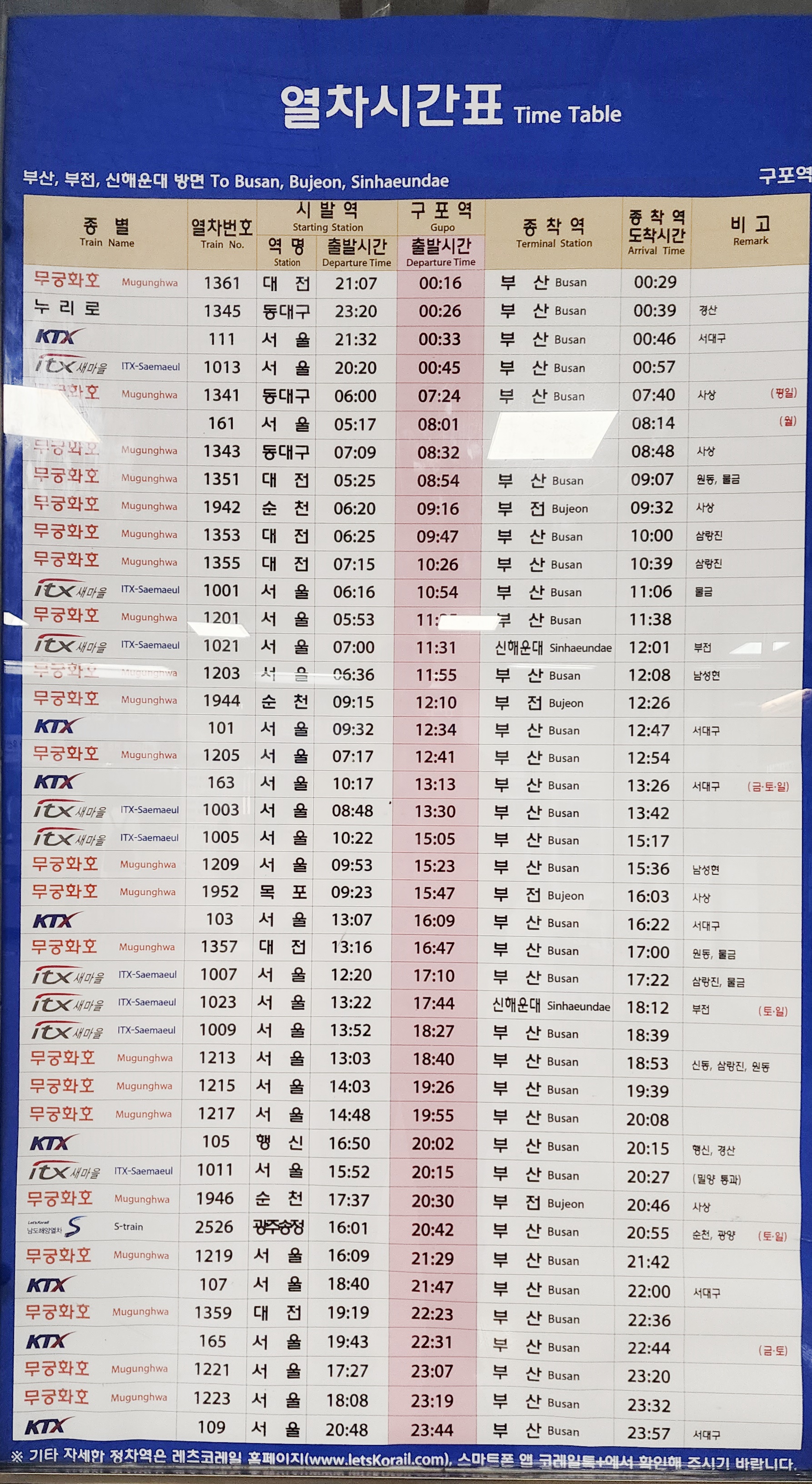구포 출발 서울, 대전, 동대구, 목포 방면.