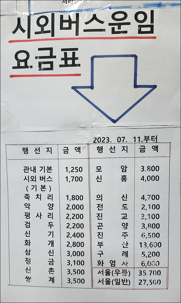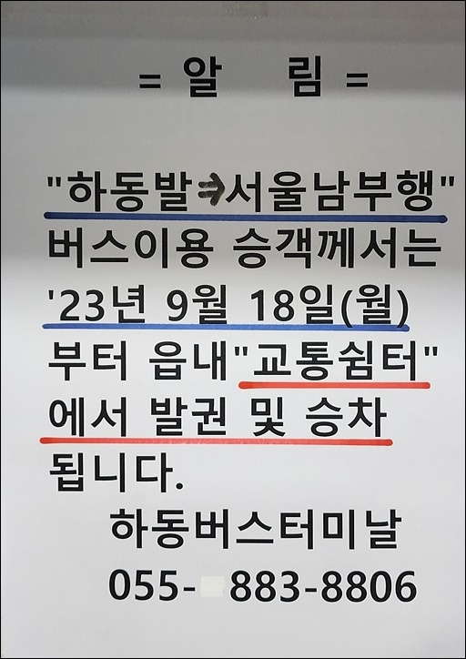 하동발 서울남부행 버스이용고객께서는 2023년 9월 18일(월)부터