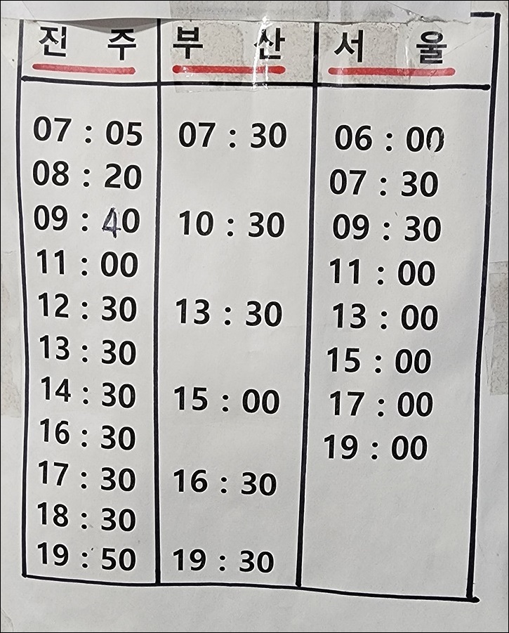 읍내 "교통쉼터" 에서 발권 및 승차 됩니다.