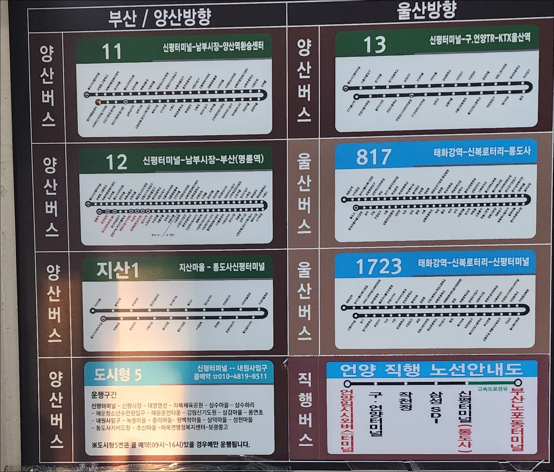 양산 버스 노선안내도