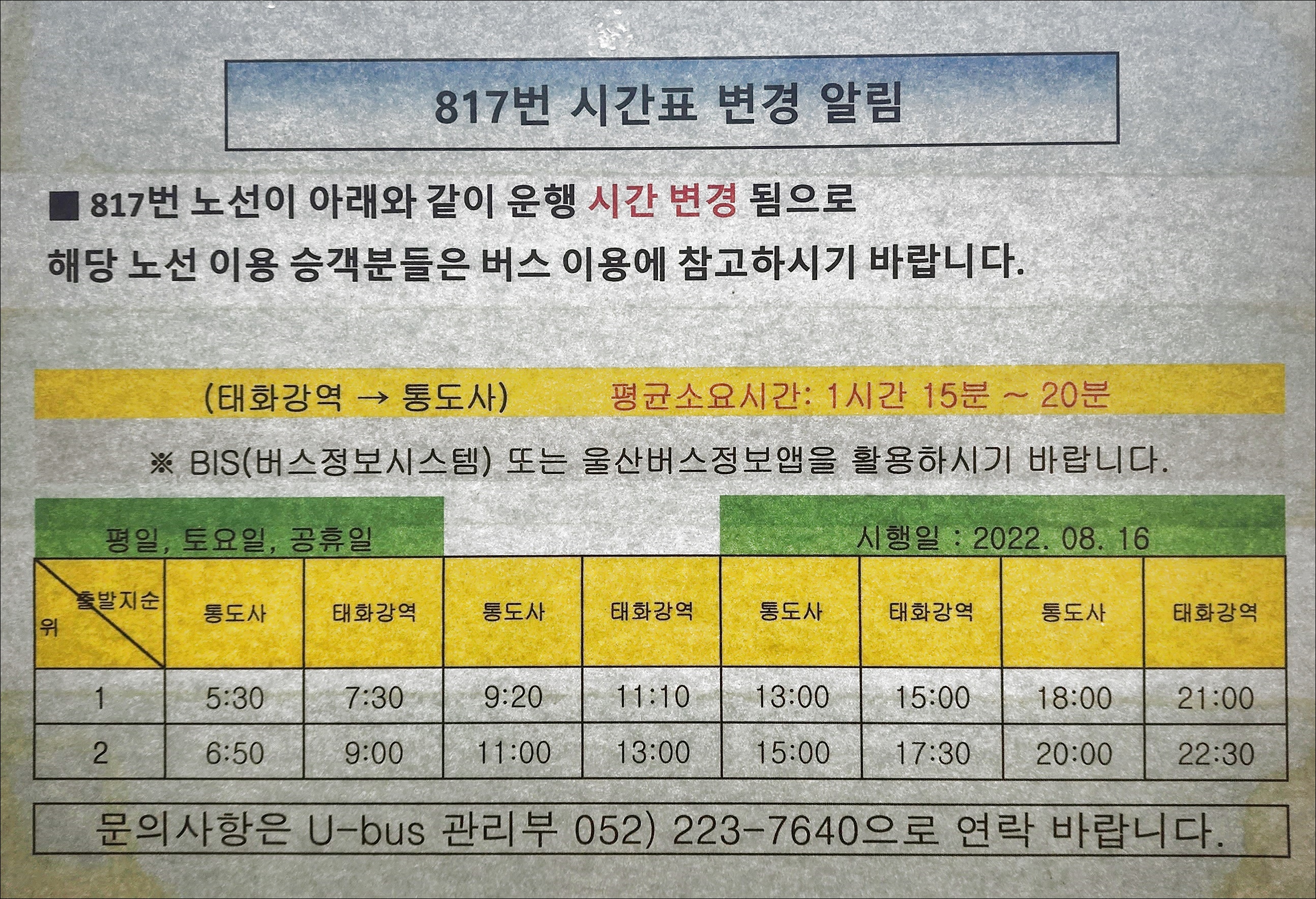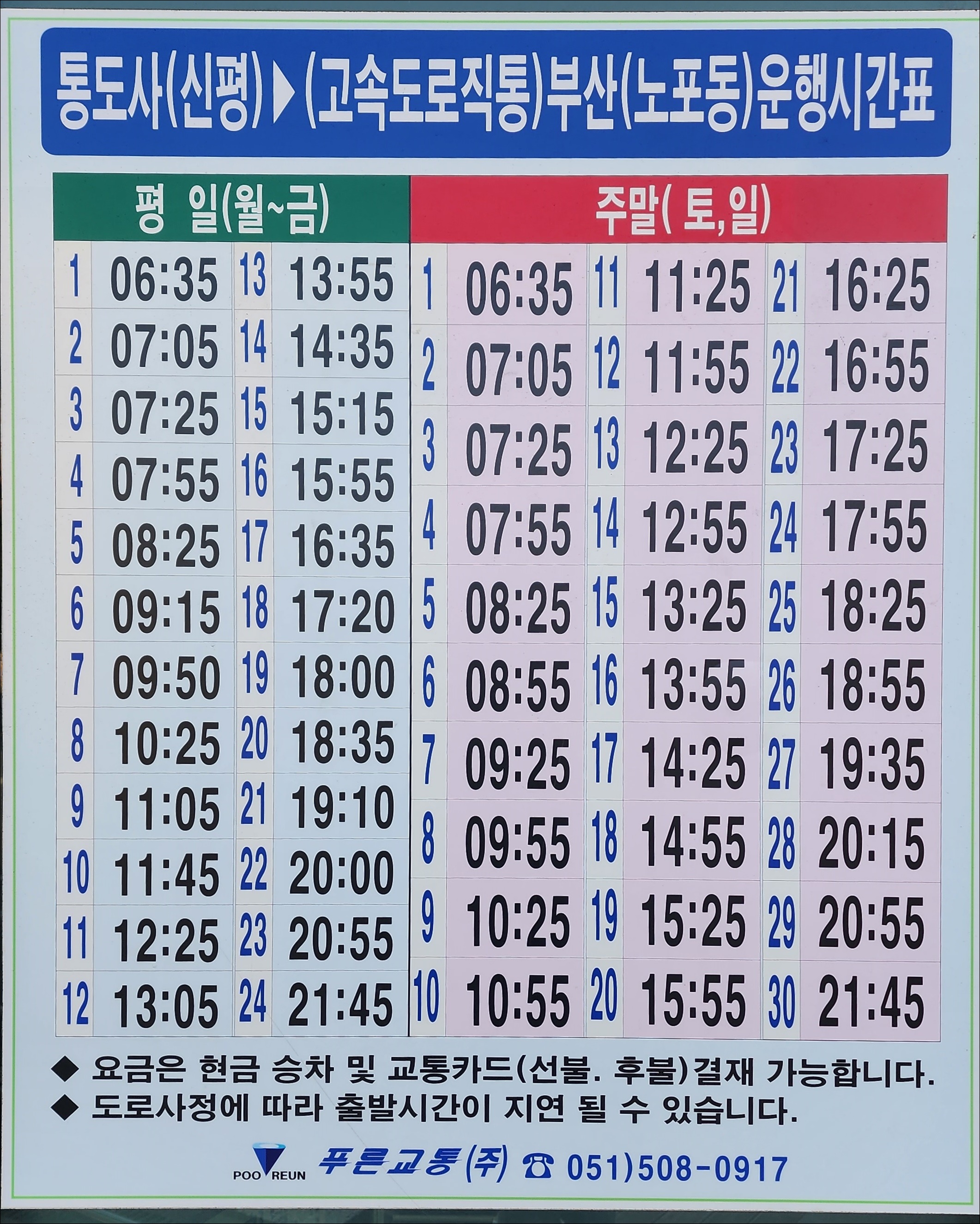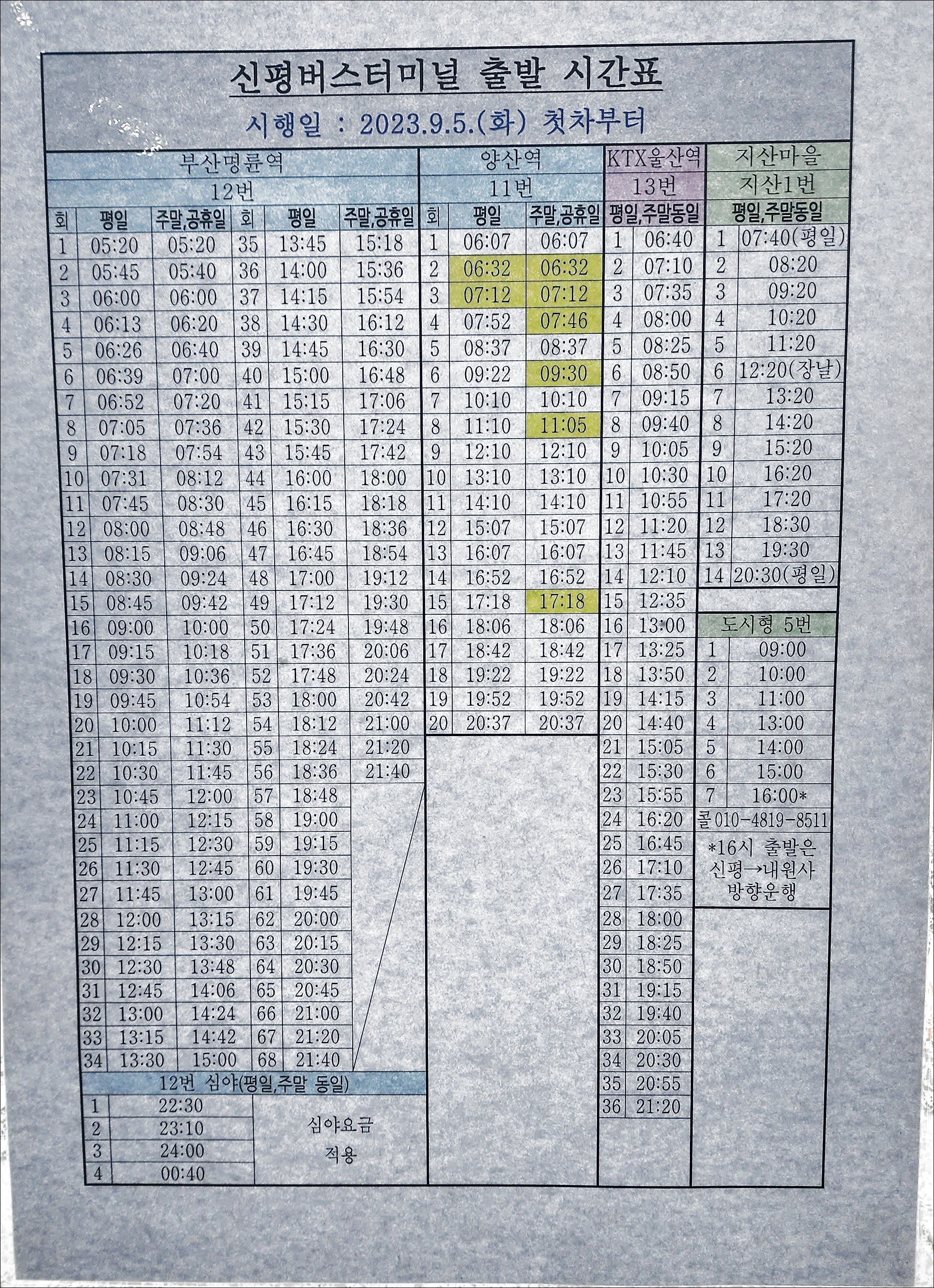 11번 통도사, 신평터미널 출발시간변경