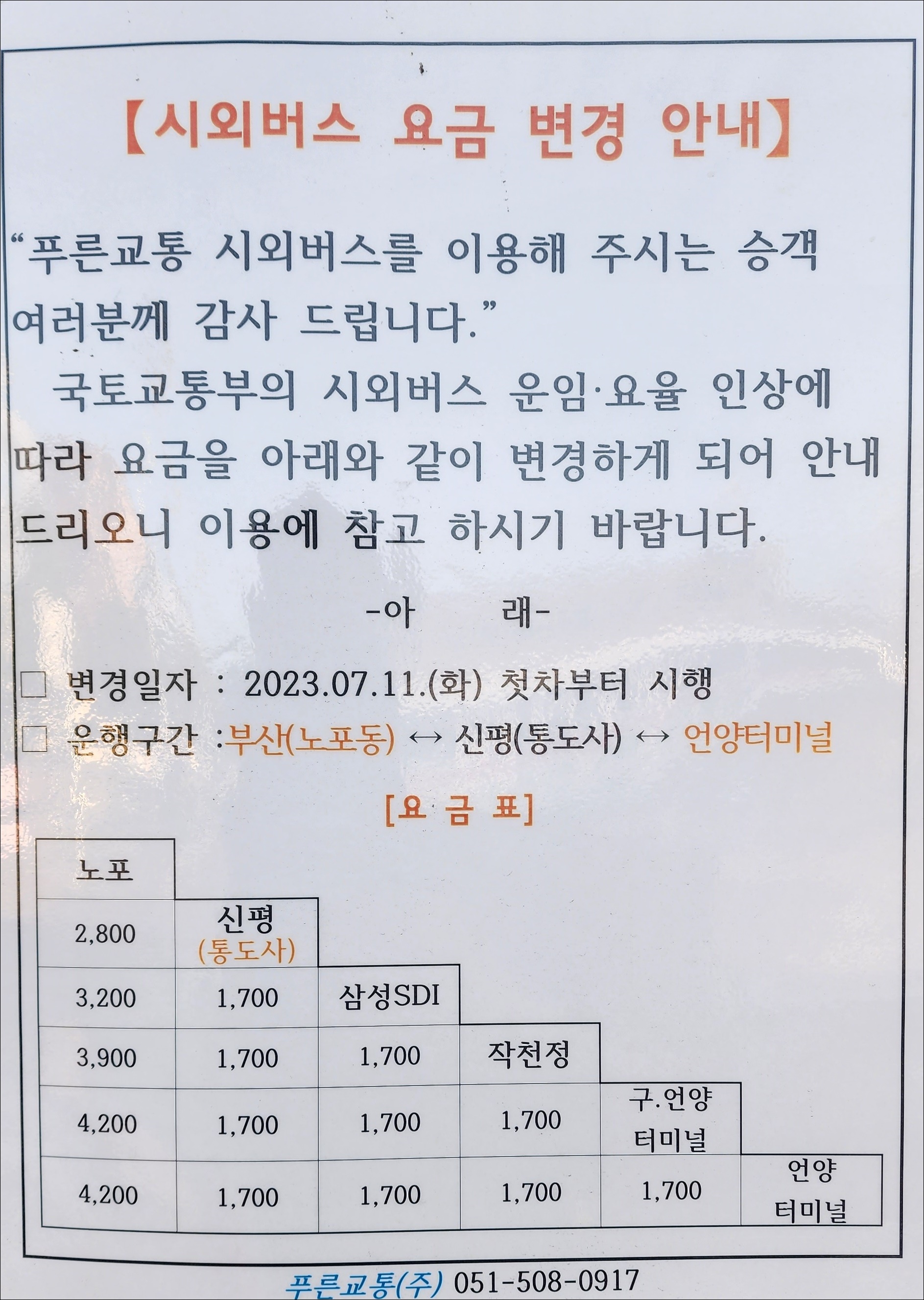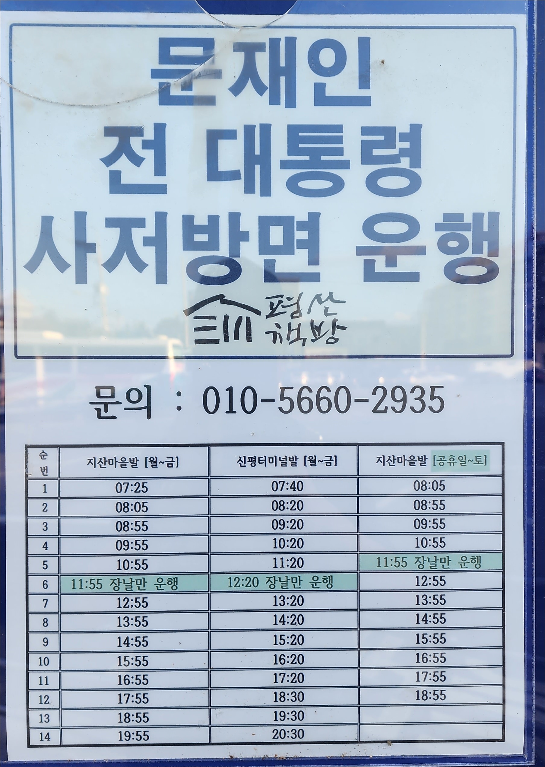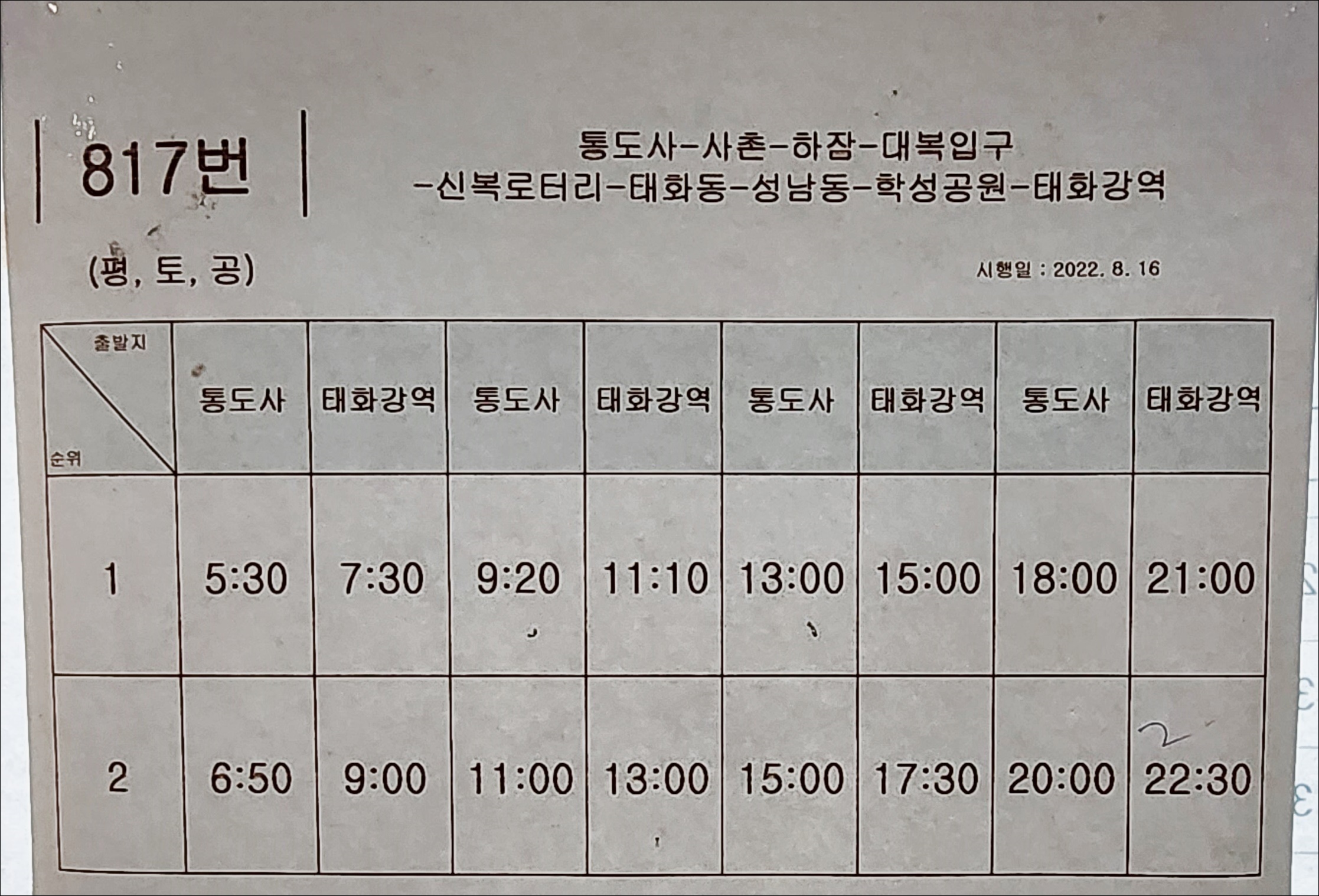 11번 통도사, 신평터미널 출발시간변경
