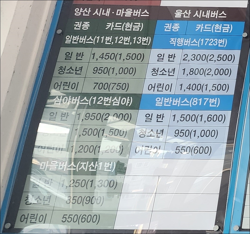 양산 시내 마을버스 시간표