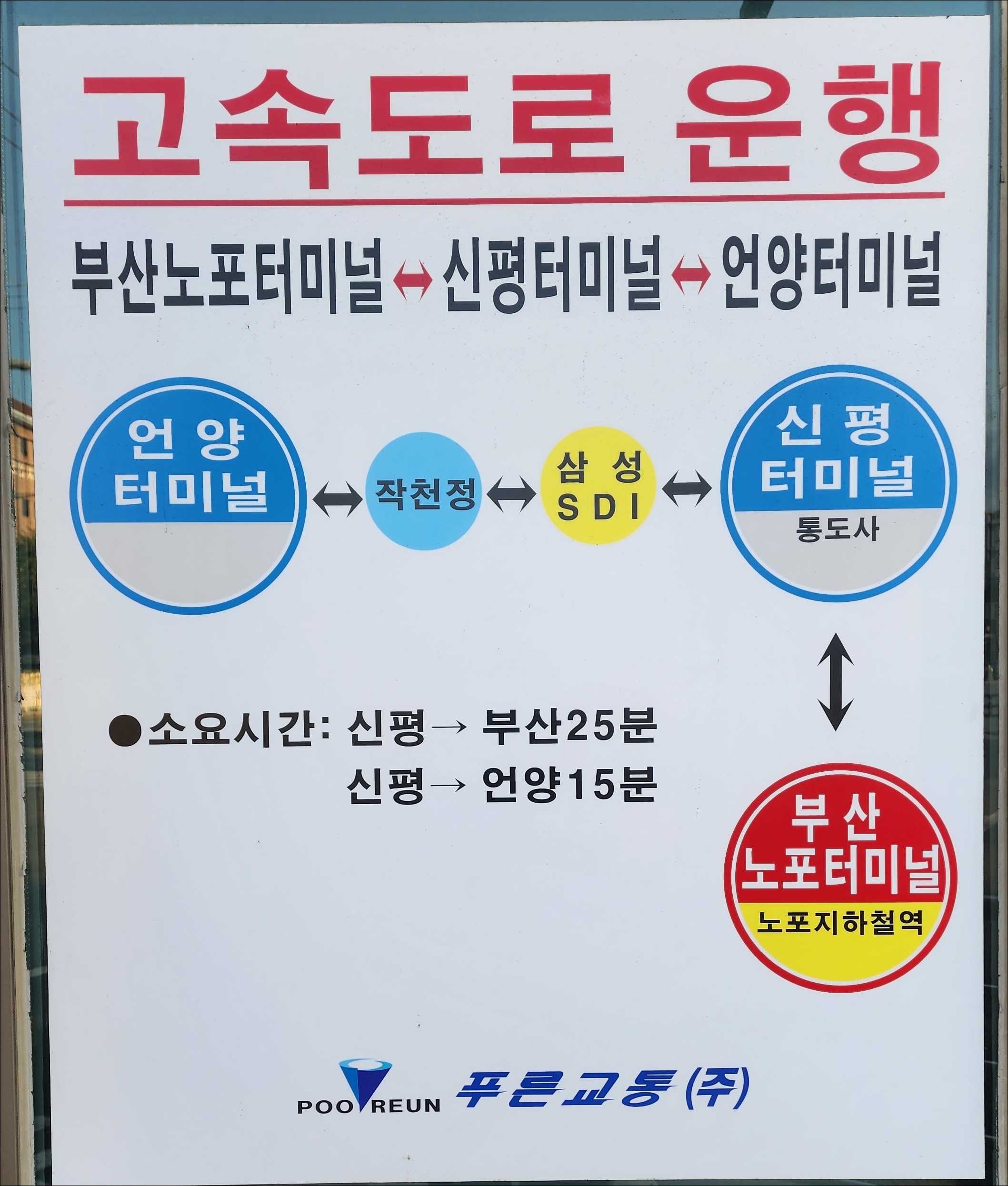통도사 신평 출발 부산 방면 고속도로 운행