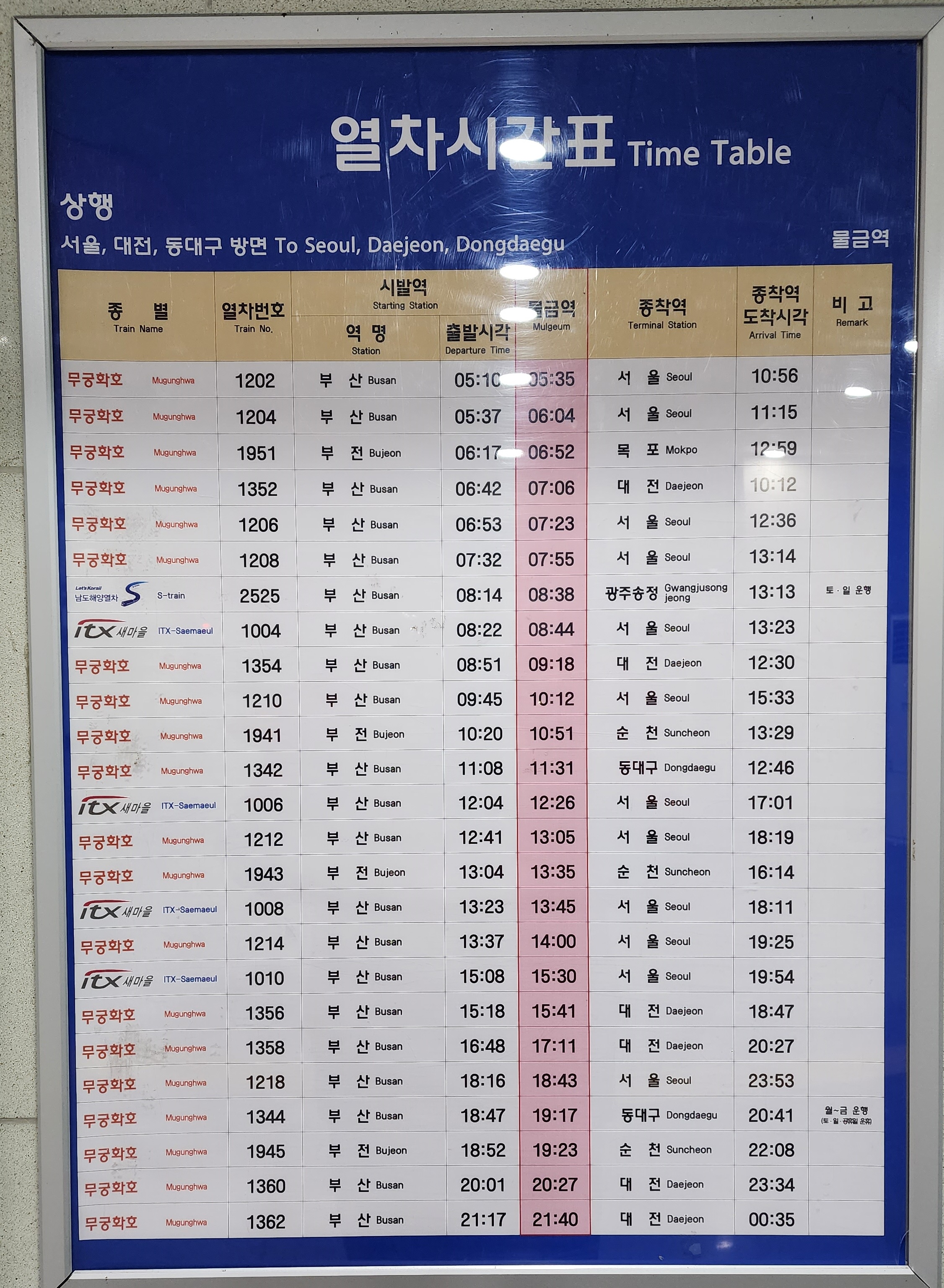 2023년 12월 28일까지 물금역 열차시간표 상행