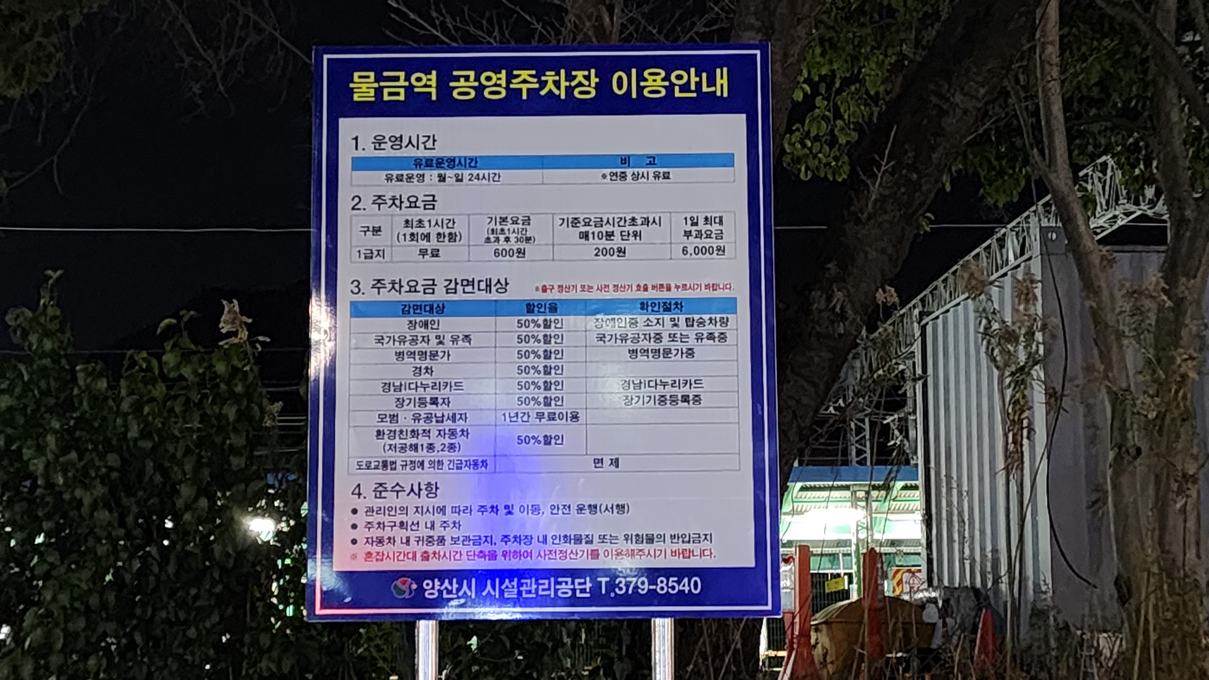 물금역 공영주차장 요금안내