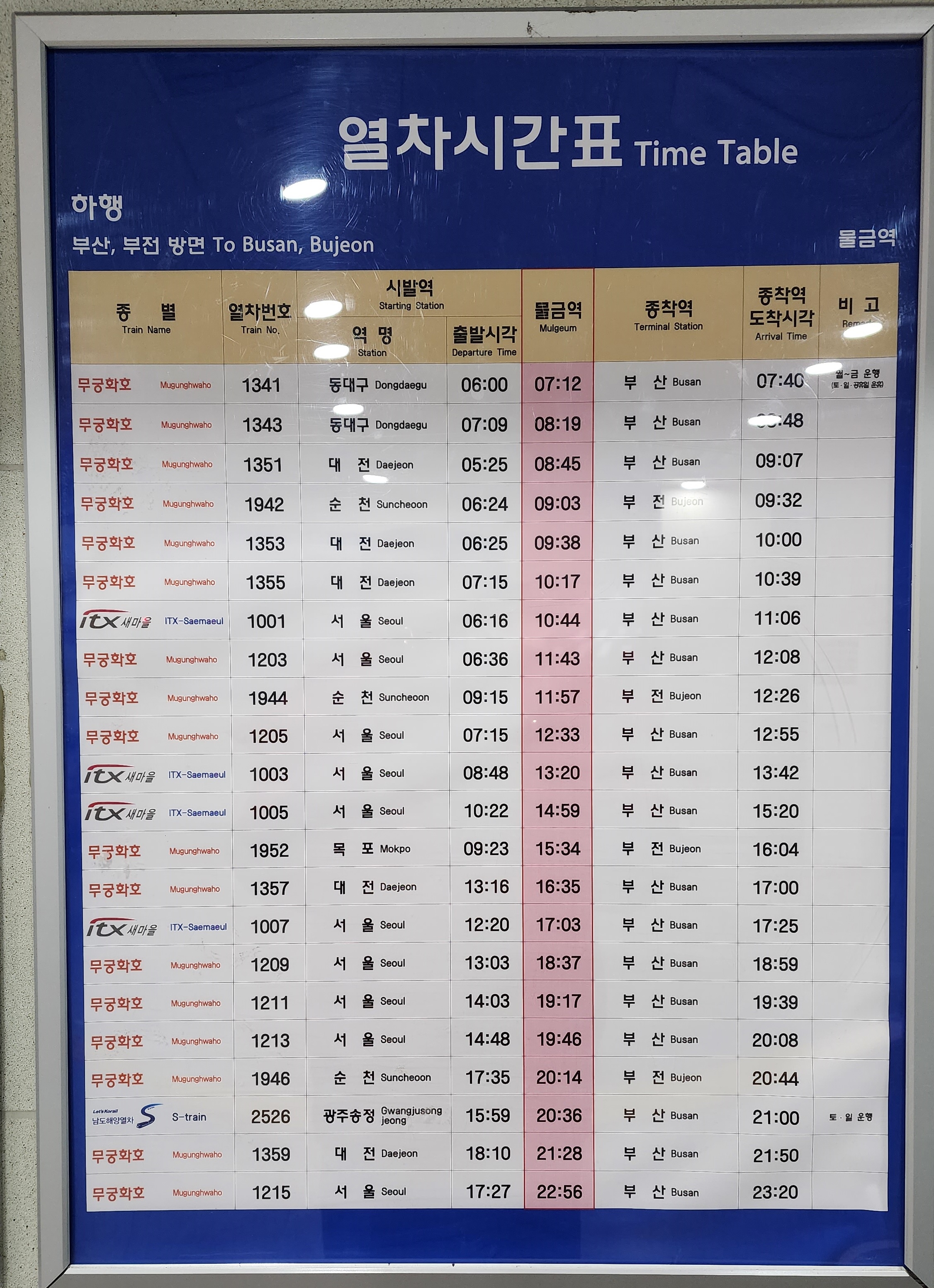 2023년 12월 28일까지 물금역 열차시간표 하행