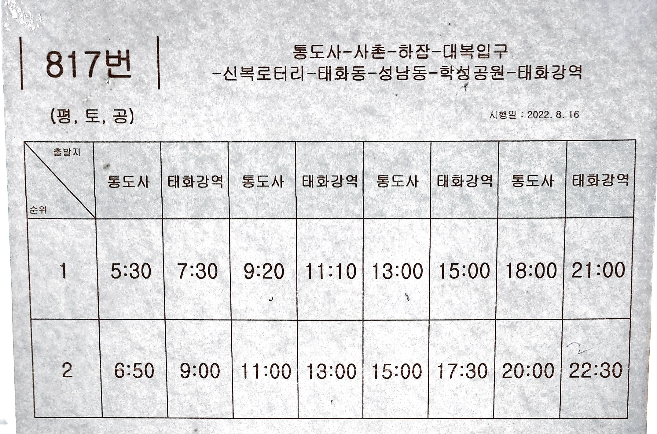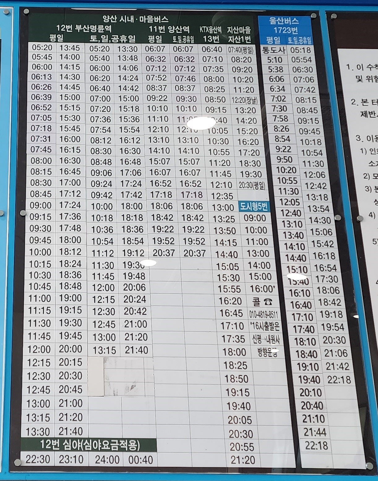 신평시외버스터미널 양산시내버스 마을버스 시간표