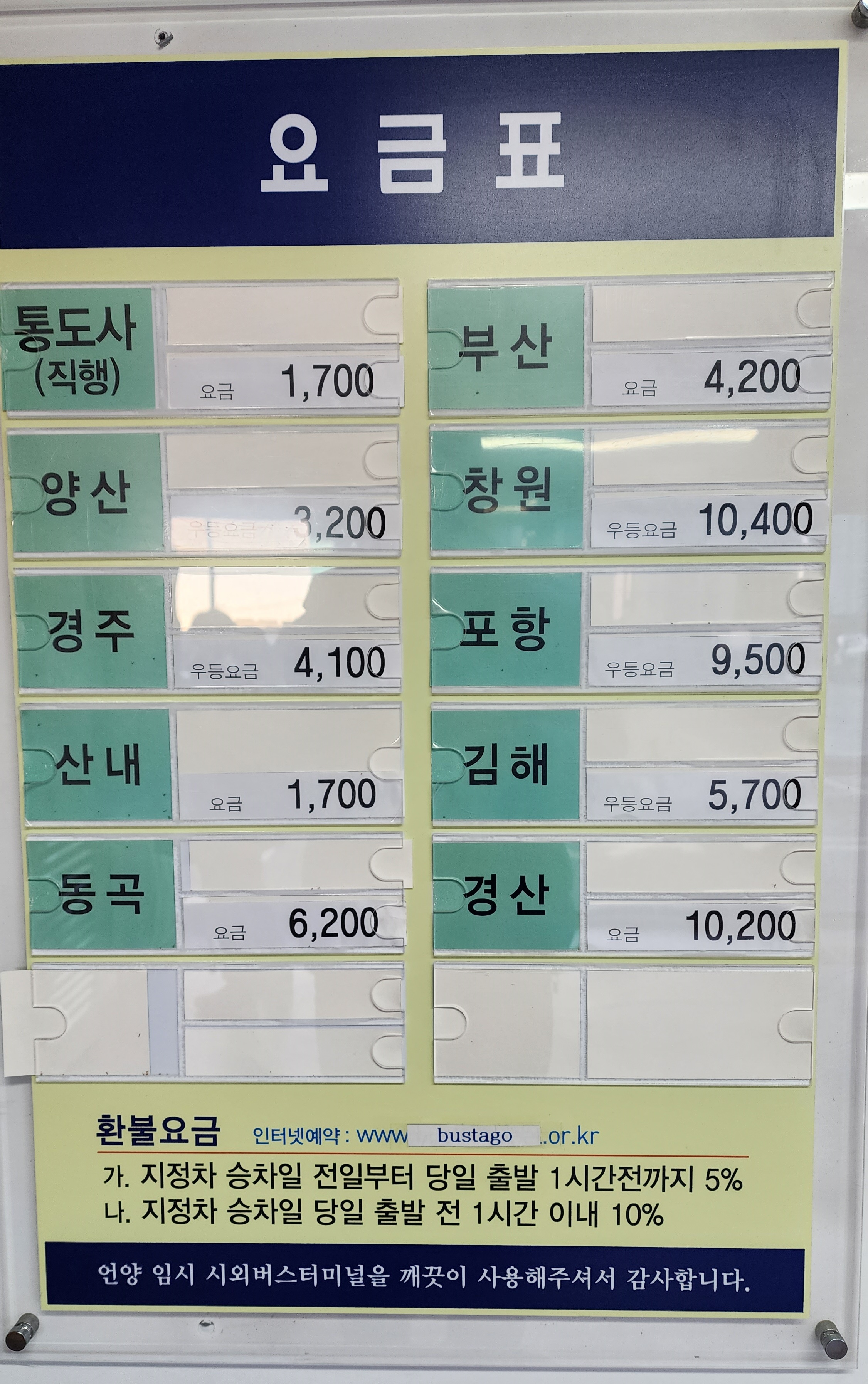 언양시외버스터미널 요금표