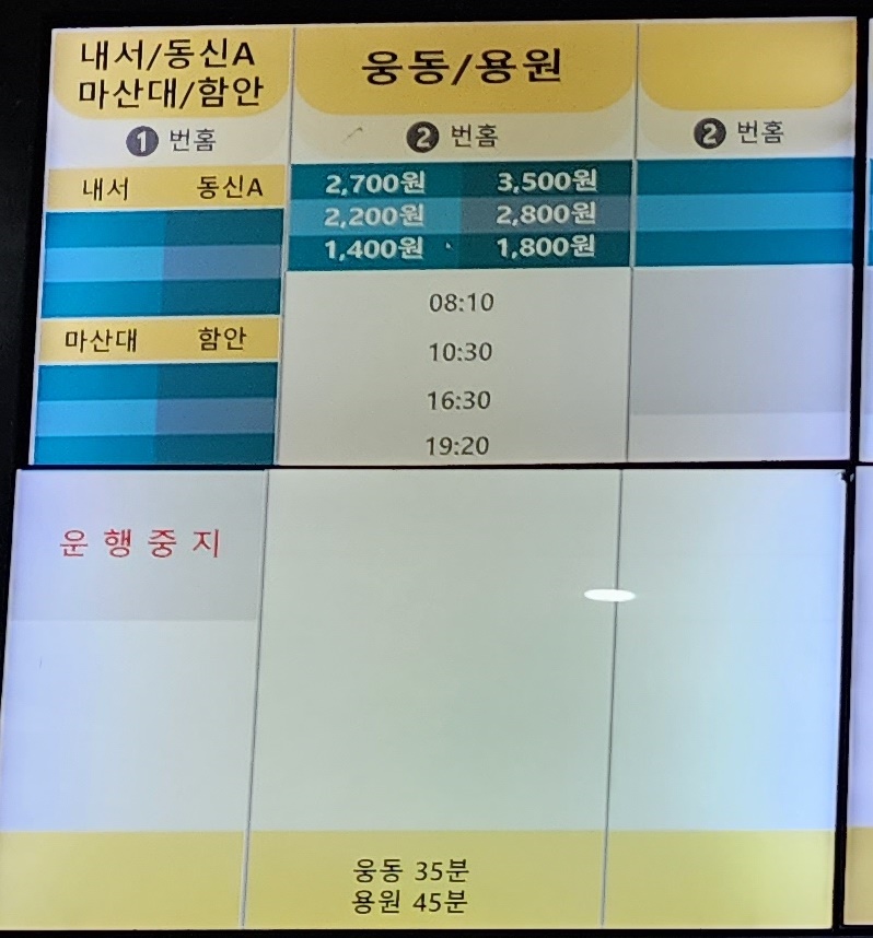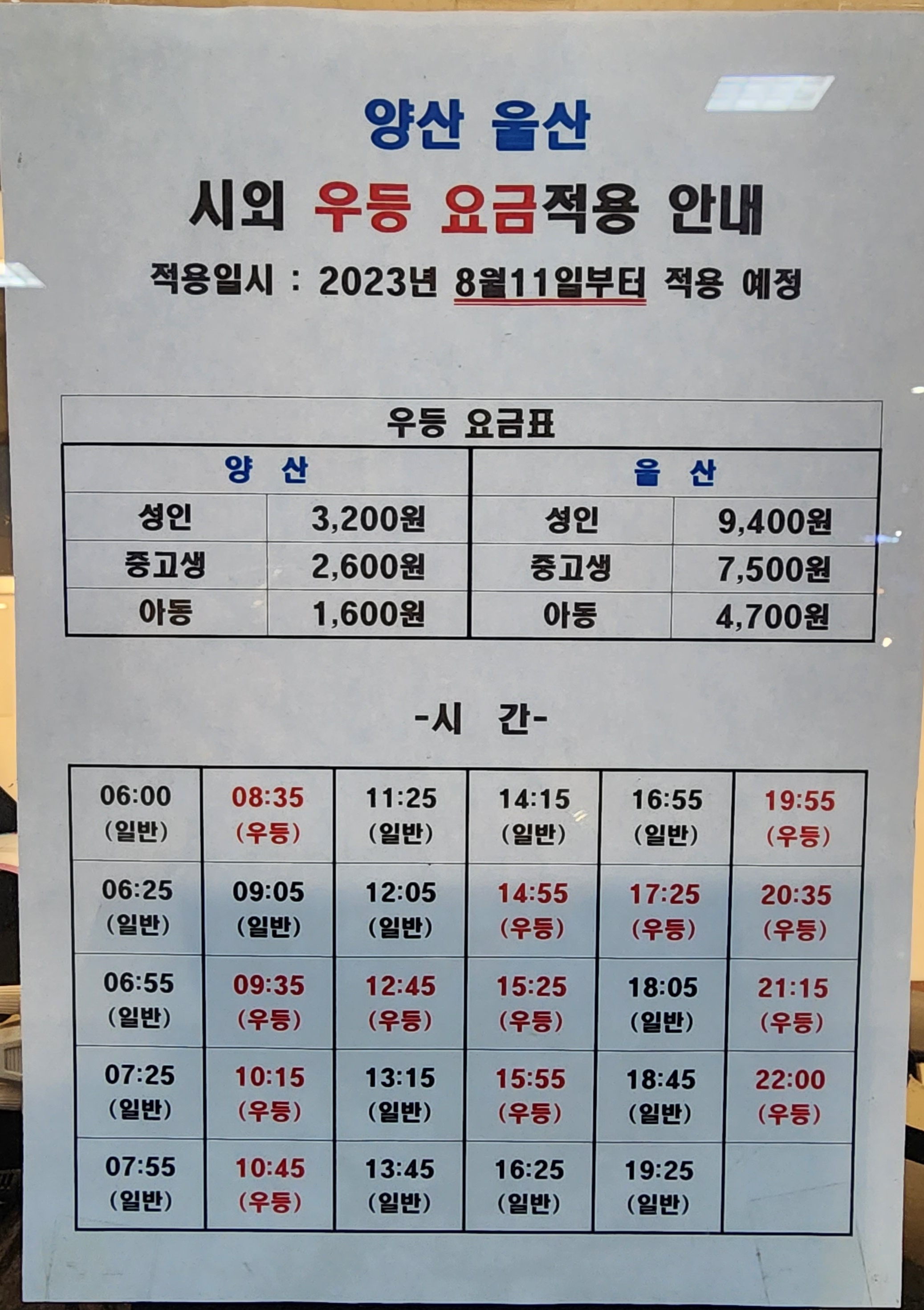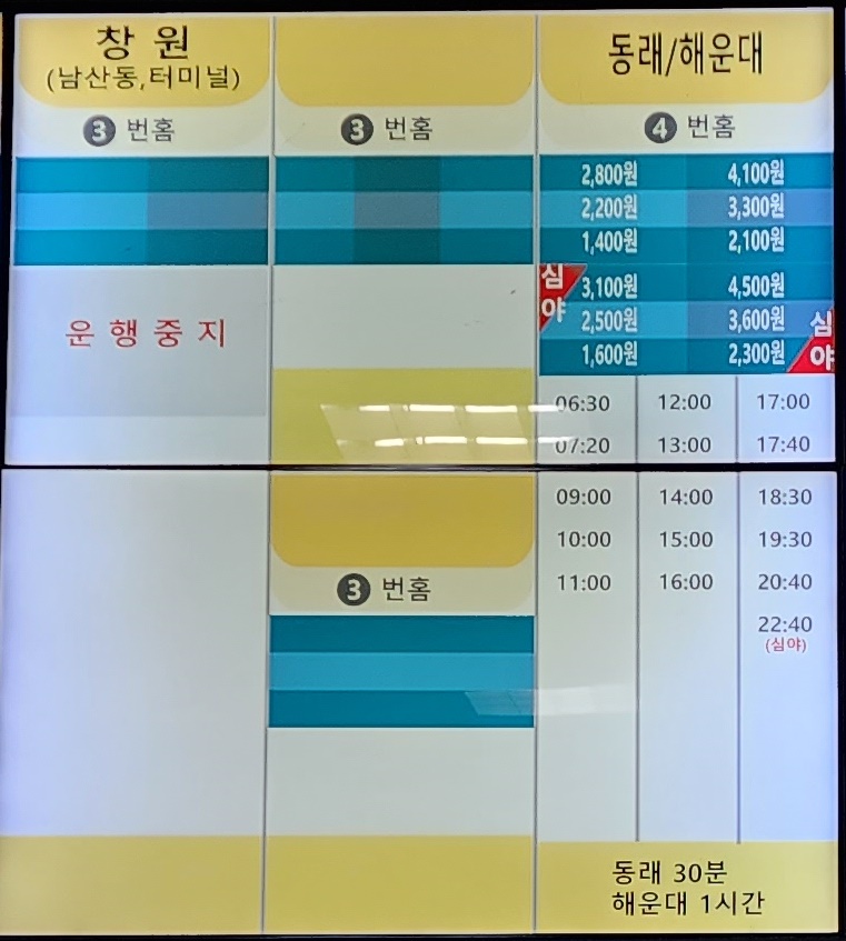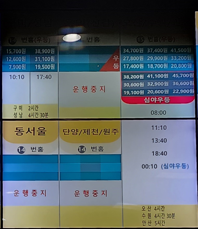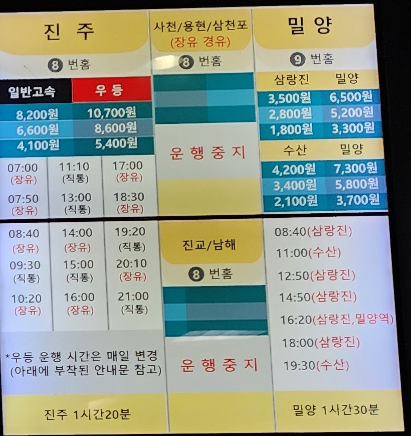 김해 출발 진주 시외 우등 요금 적용 안내.