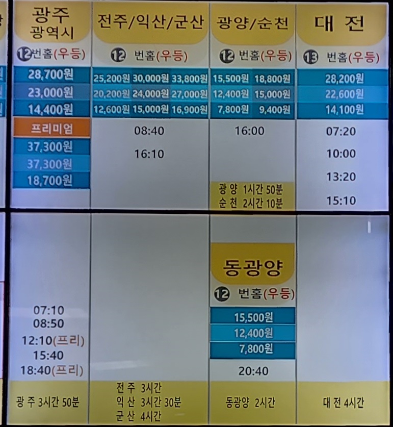 김해 출발 광주광역시, 전주, 익산, 군산, 광양, 동광양, 순천, 대전 방면.