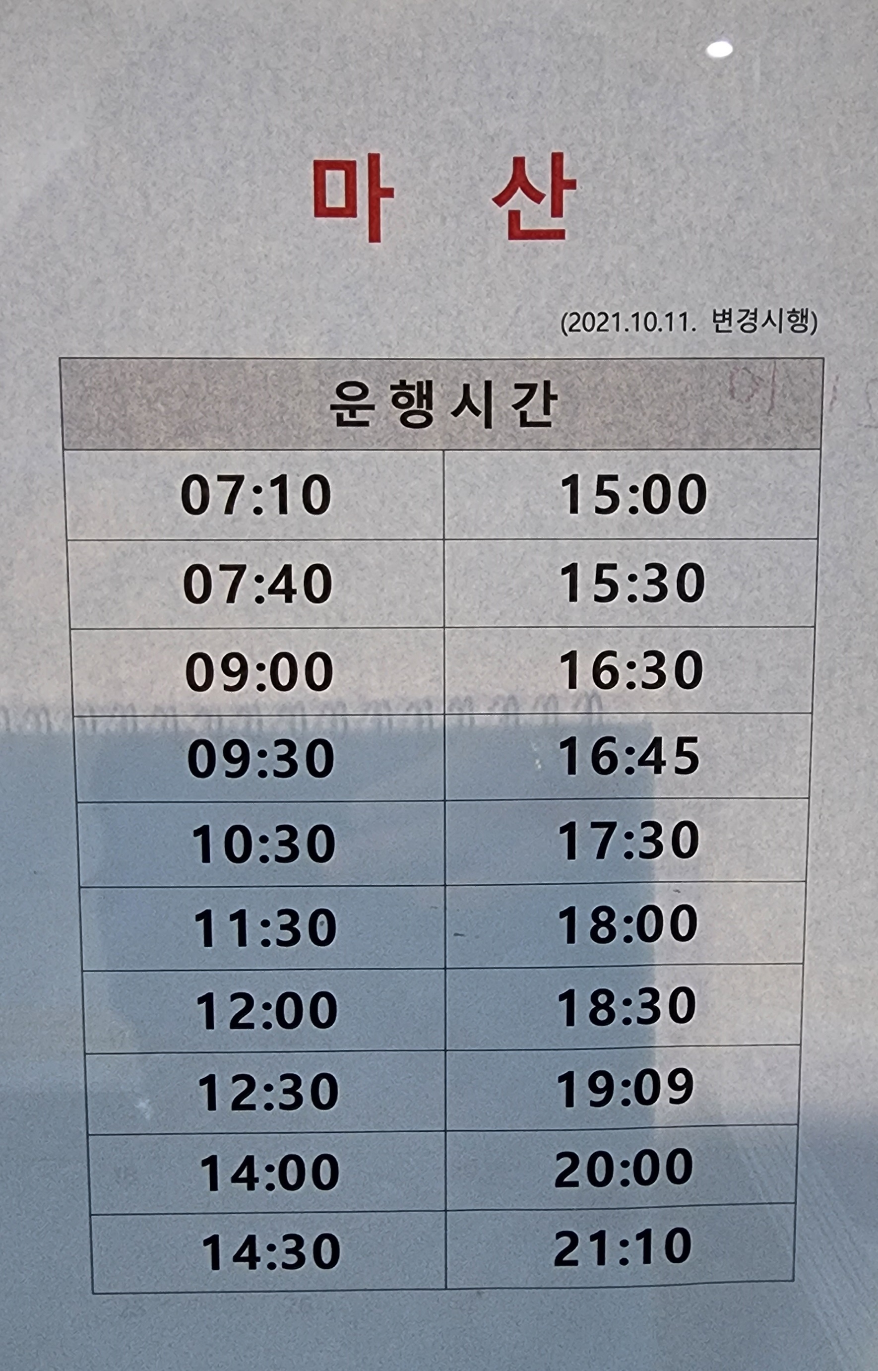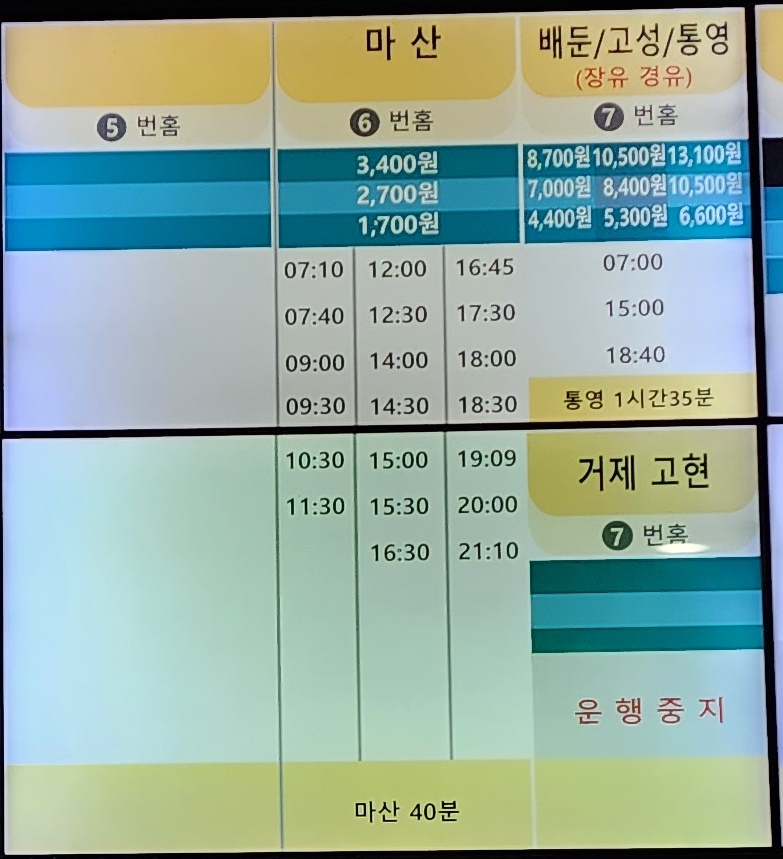 김해 출발 마산, 배둔, 고성, 통영 방면.