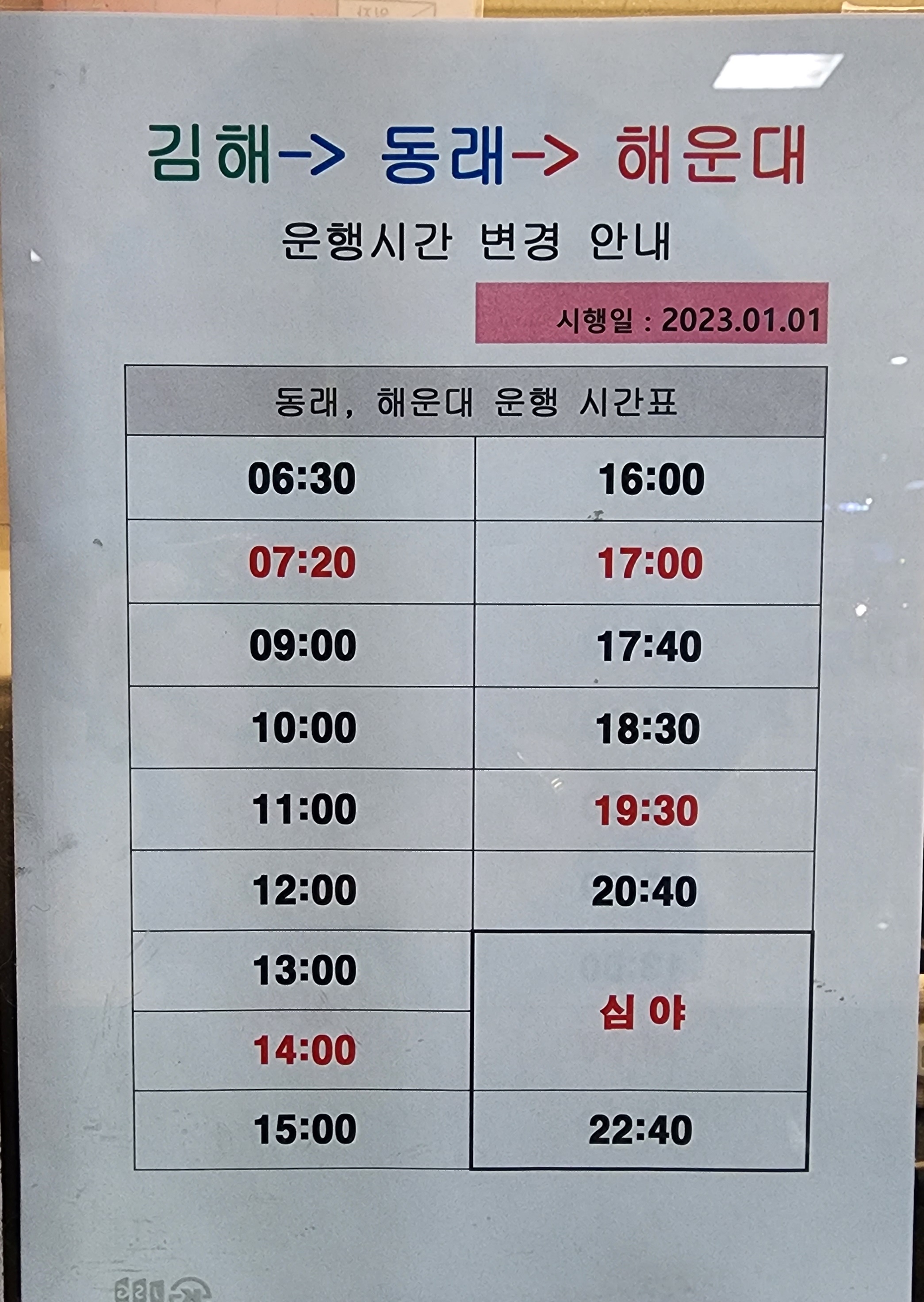김해 출발 부곡, 영산, 창녕, 서대구, 양산, 울산, 언양, 경주, 포항 방면.