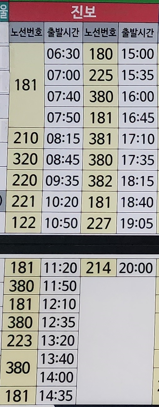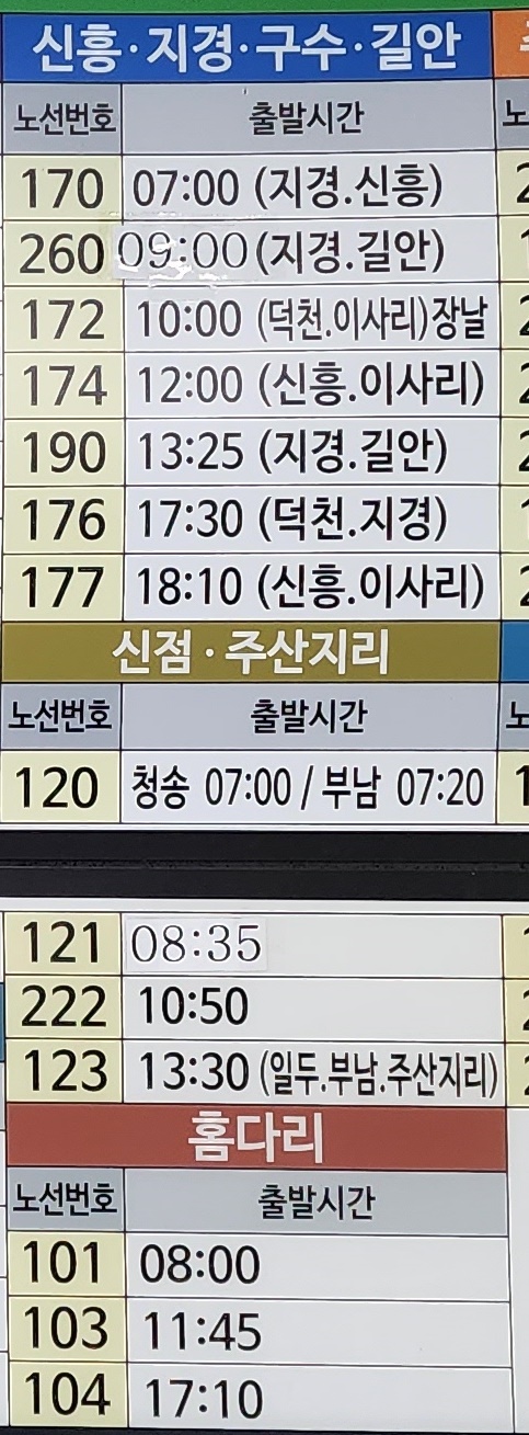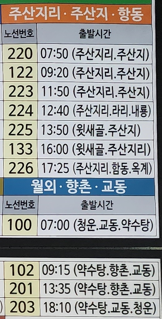 청송시외버스터미널 시간표