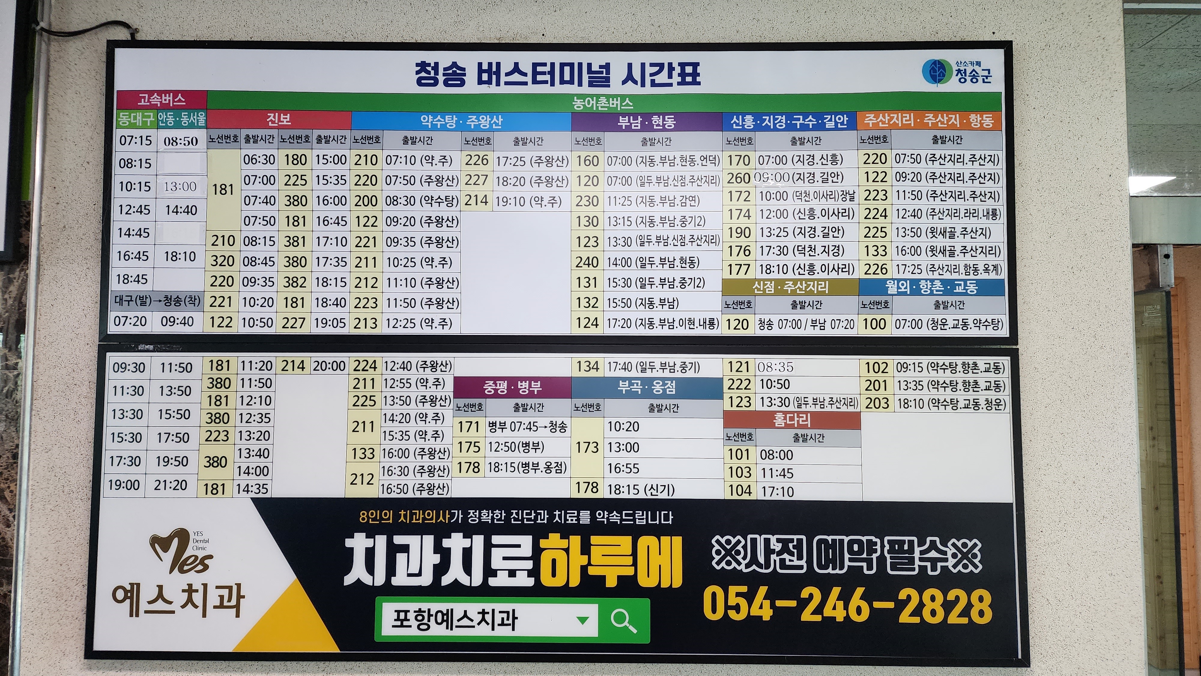 청송 출발 동대구, 안동, 동서울 방면.