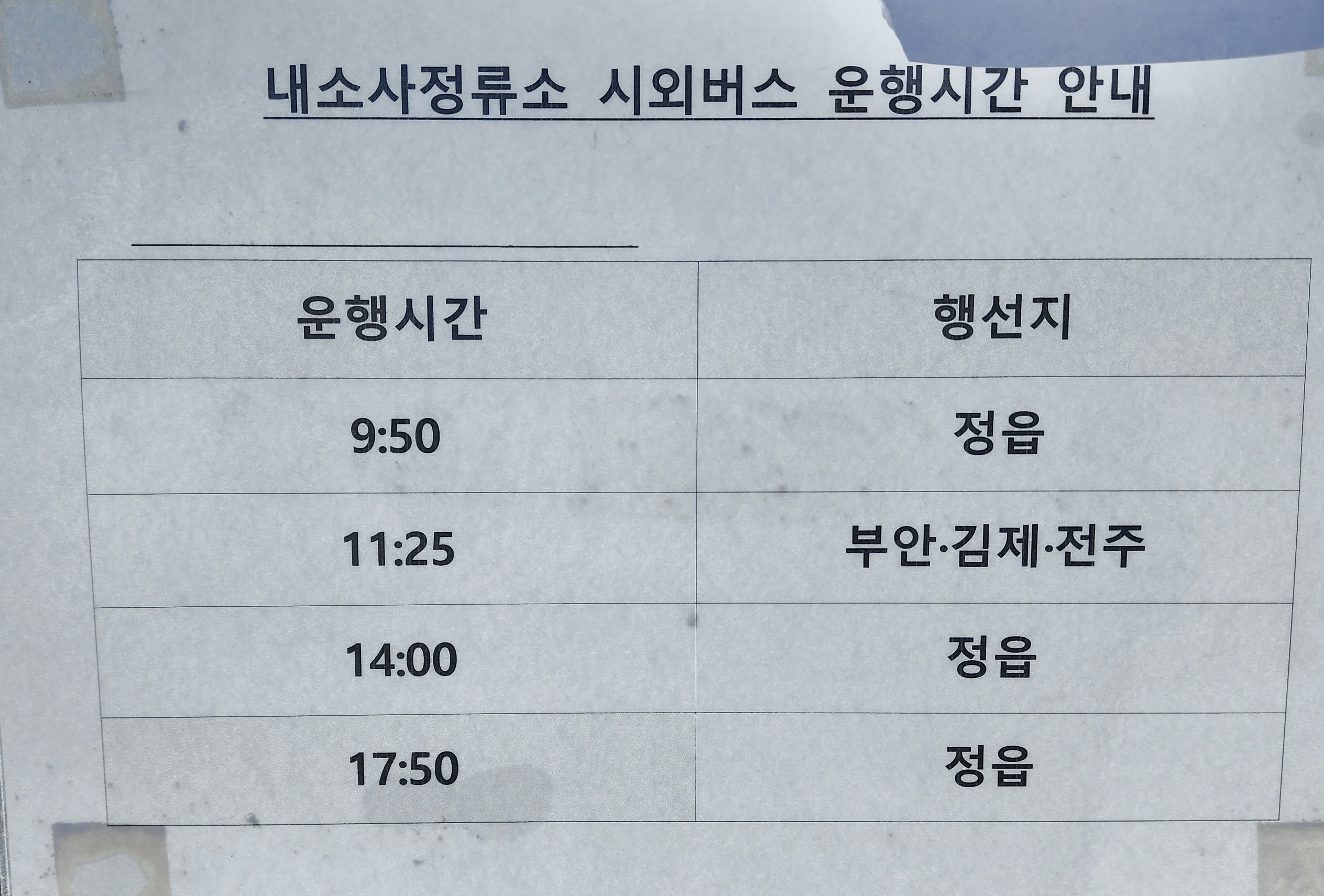 내소사 출발 정읍, 부안, 김제, 전주 방면